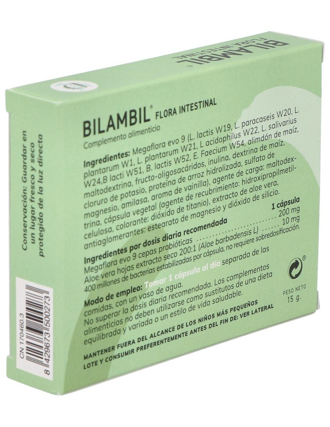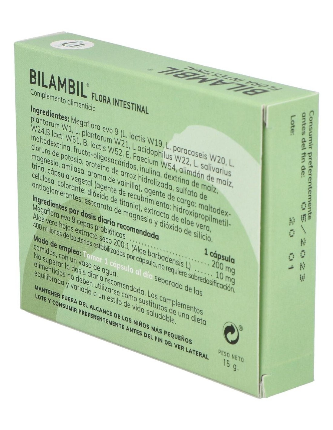 Dimefar Bilambil Probiótico 30Cáps es un complemento alimenticio con 9 cepas probióticas seleccionadas que presentan elevada efectividad a nivel intestinal, resistencia al pasar por el tracto gastrointestinal y estabilidad de 4 años a temperatura ambiente. Además, contiene aloe vera y fibra prebiótica, la cual sirve como alimento para los probióticos, contribuyendo así a su efecto beneficioso para el intestino.