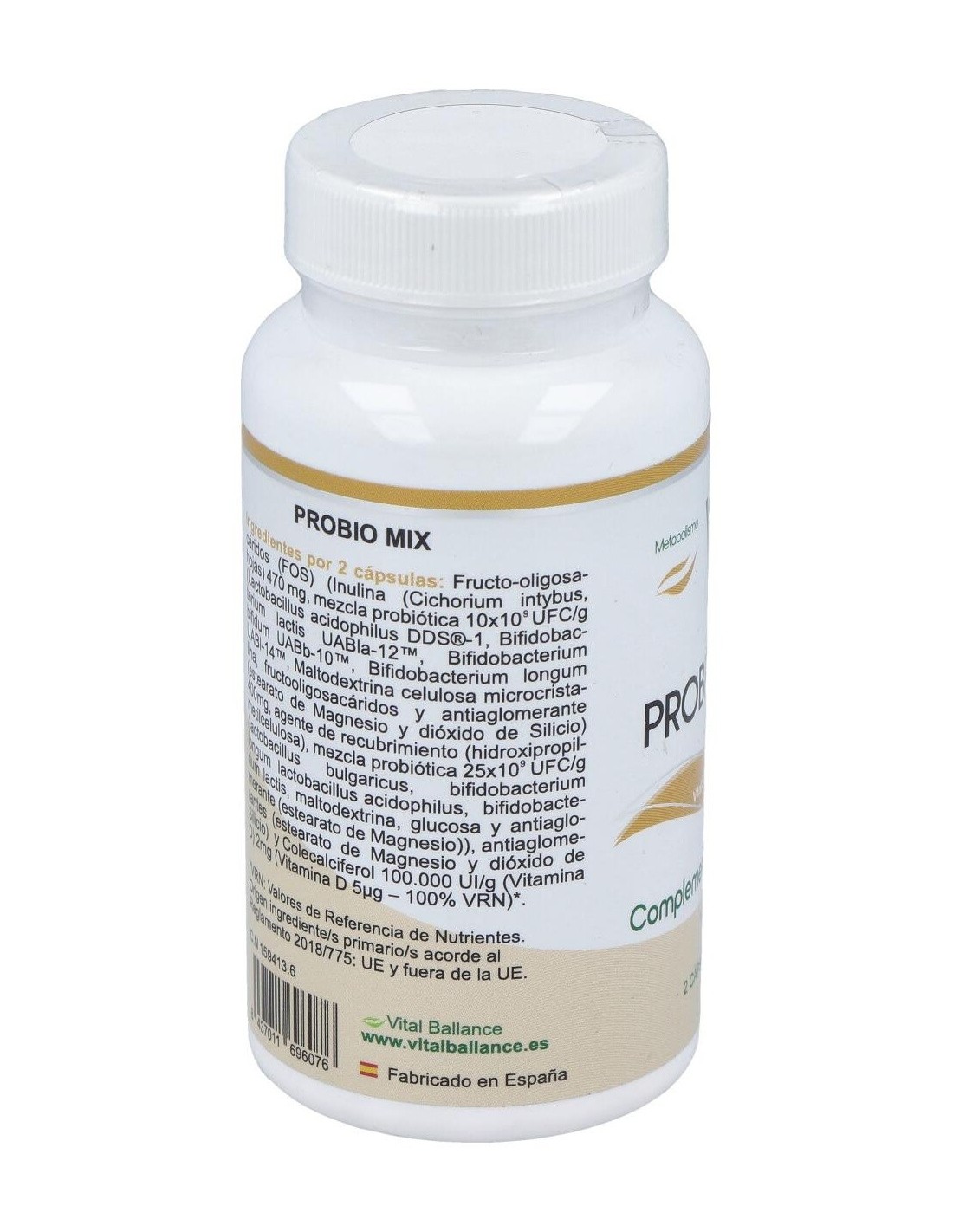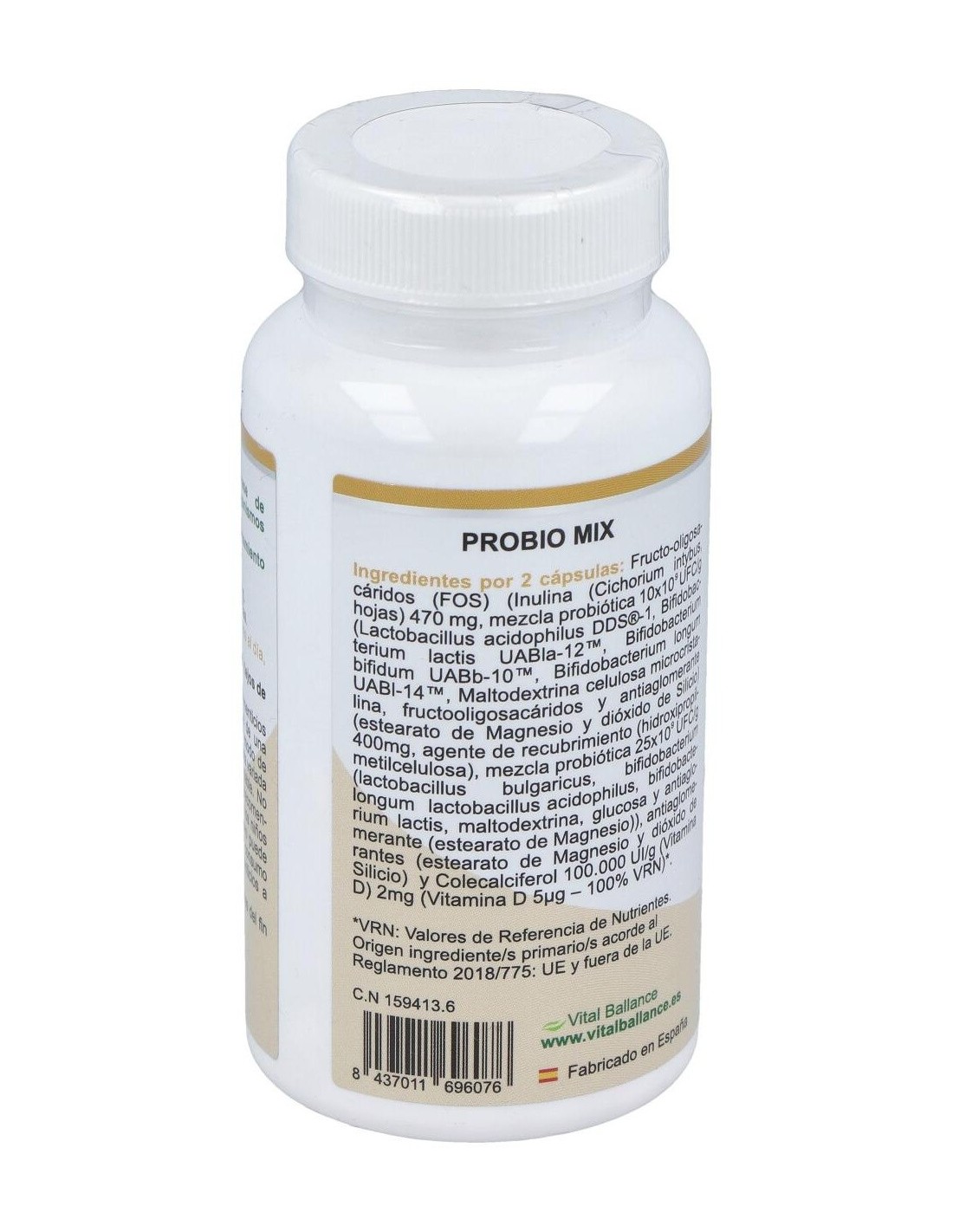 Mezcla probiótica PROBIOMIX (bifidobacterium lactis, lactobacillus bulgaricus, LA-5, BB12, maltodextrina, dextrosa y estearato de magnesio) ... 50 mg