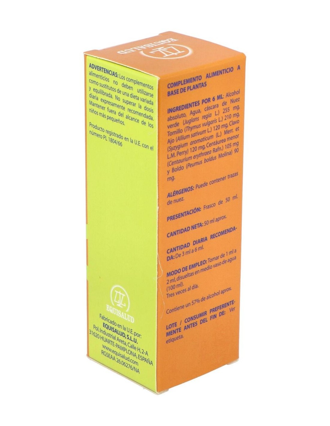 2.125 mg de nogal (Juglans regia, corteza verde, > 10,0% taninos elágicos).