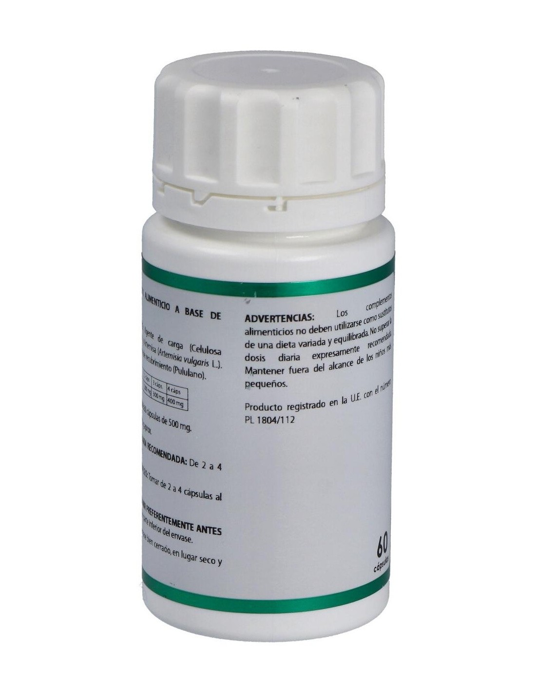 Este complemento nutricional funciona como antibacteriano, eficaz en algunos casos de Helicobacter Pylori. Es un desinfectante del tracto digestivo, así como antiparasitario en general.Composición por cápsula:100 mg de extracto seco de artemisa (Artemisa vulgaris L, parte aérea).Modo de empleo:Tomar de 2 a 4 cápsulas al día.Presentación:Envase de 60 cápsulas.