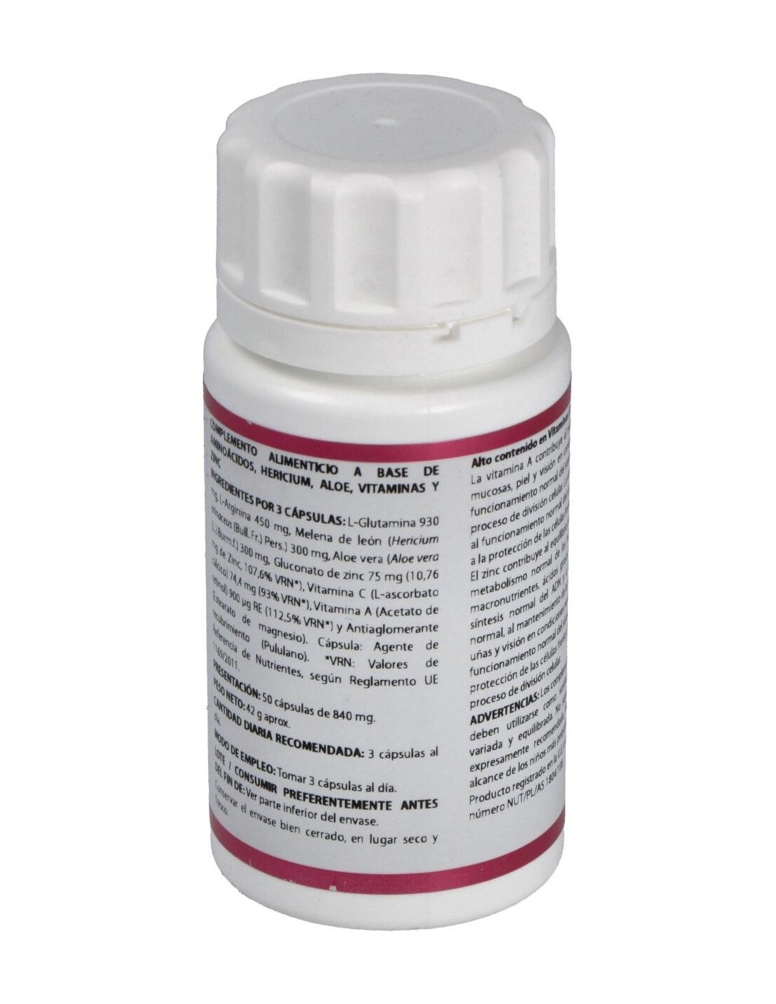L-Arginina: Ayuda a mantener en buen estado la pared intestinal, porque potencia la síntesis de colágeno entre otras funciones, además ayuda a la cicatrización y normalización de las mucosas, heridas o quemaduras.