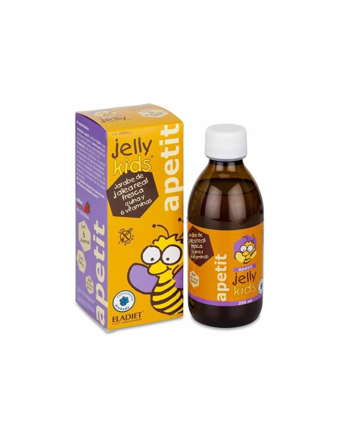 La fórmula de Jelly Kids Apetit está enriquecida con jalea real fresca, vitaminas y quina, lo cual lo convierte en un excelente suplemento nutritivo en épocas de alto desgaste físico y mental. La quina es una planta que tradicionalmente se ha utilizado como aperitivo y favorecedora de las secreciones gástricas.