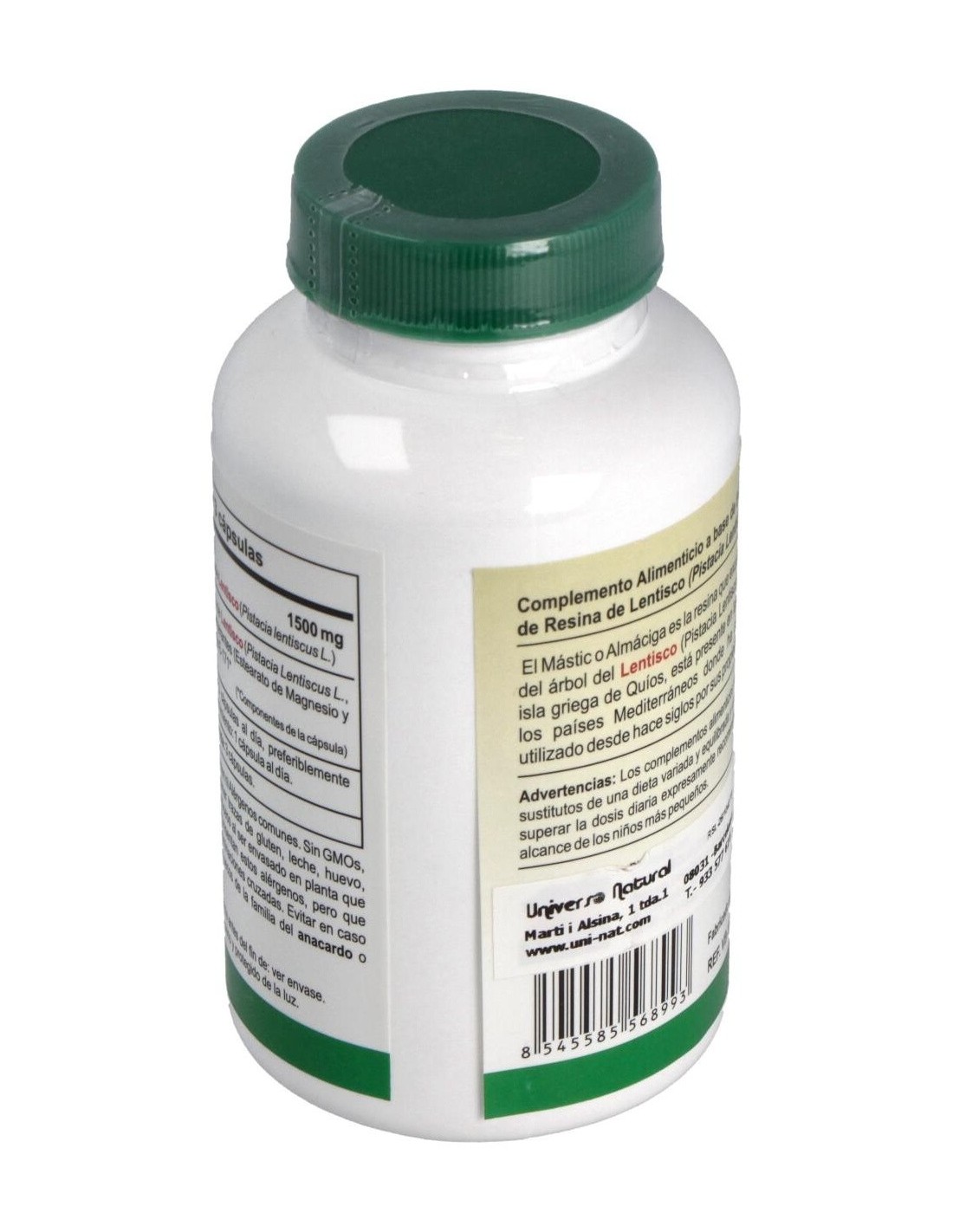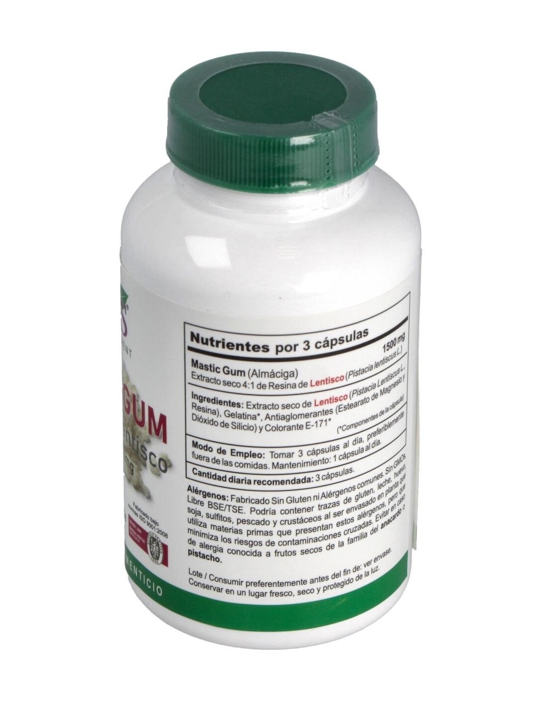 Complemento alimenticio a base resina de lentisco que funciona como protector estomacal, ayudando con la función normal del intestino delgado y el estómago. También tiene propiedades antiinflamatorias, antivirales y antisépticas por lo que es bueno frente a las molestias intestinales y otras bacterias como el Helicobacter pylori.