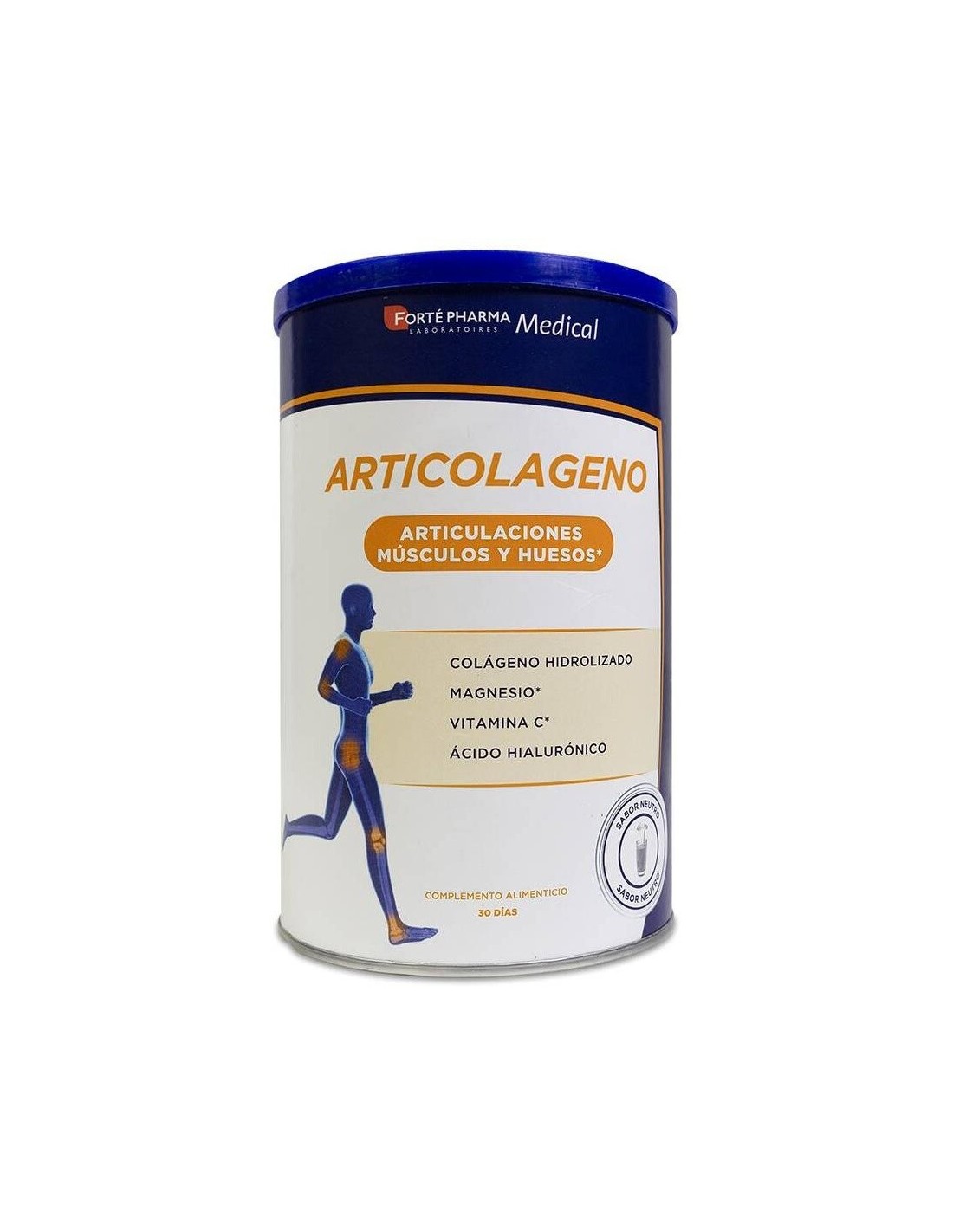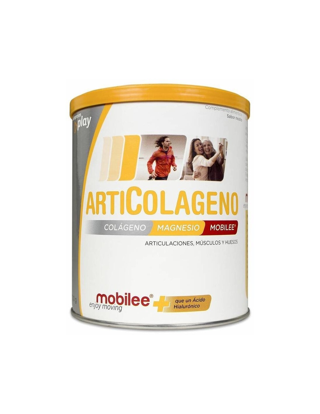 Complemento alimenticio innovador a base de colágeno, magnesio, vitamina C y Mobilee® para apoyar el mantenimiento de articulaciones, músculos y huesos en condiciones normales.