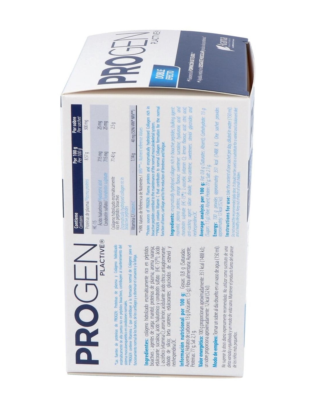 Cómo Tomar ProgenTomar 1 sobre al día. Progen SobresProgen de Arama viene en un envase con 30 sobres. Por lo que con una caja puedes tratar tus articulaciones durante un mes.Preguntas frecuentes sobre Progen Plactive