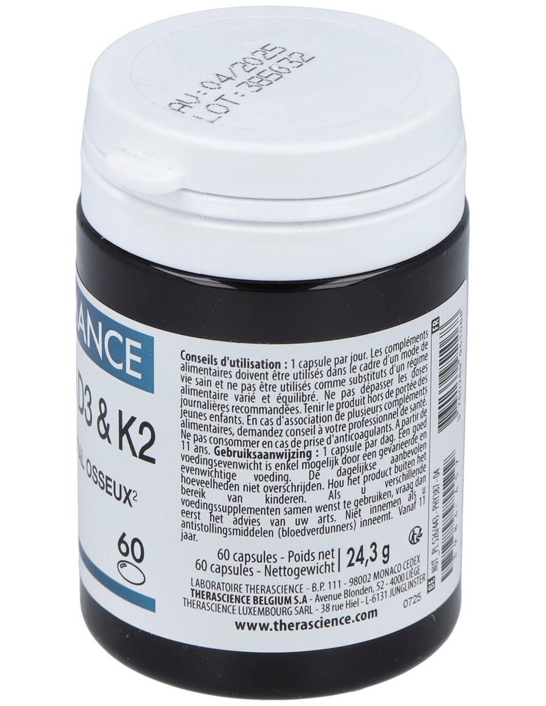 Suplemento alimenticio formulado a base la combinación de vitamina D3 y K2 en forma aceitosa. Contribuye al correcto mantenimiento de la salud ósea. Indicado como complemento de una dieta equilibrada para favorecer el normal desarrollo de los huesos y el correcto funcionamiento del sistema inmune.