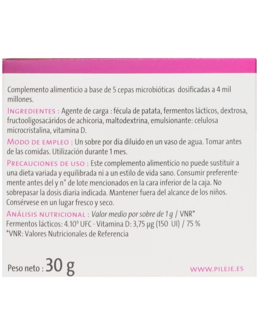 - Cada caja incluye 30 sobres, proporcionando un suministro adecuado para un uso continuado.