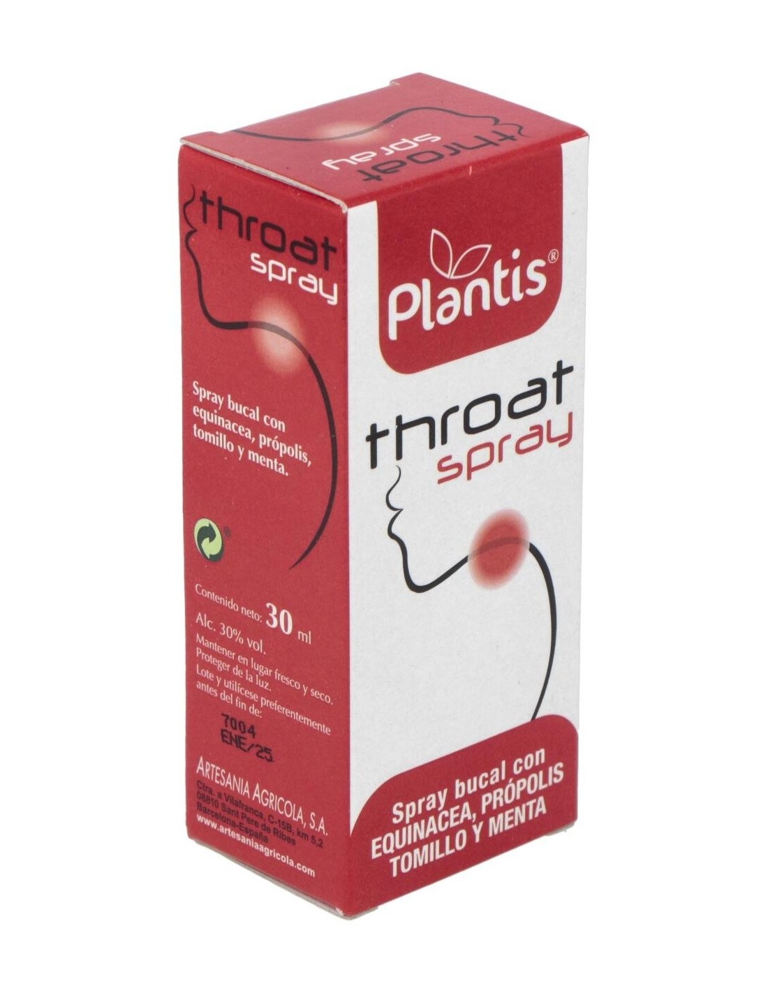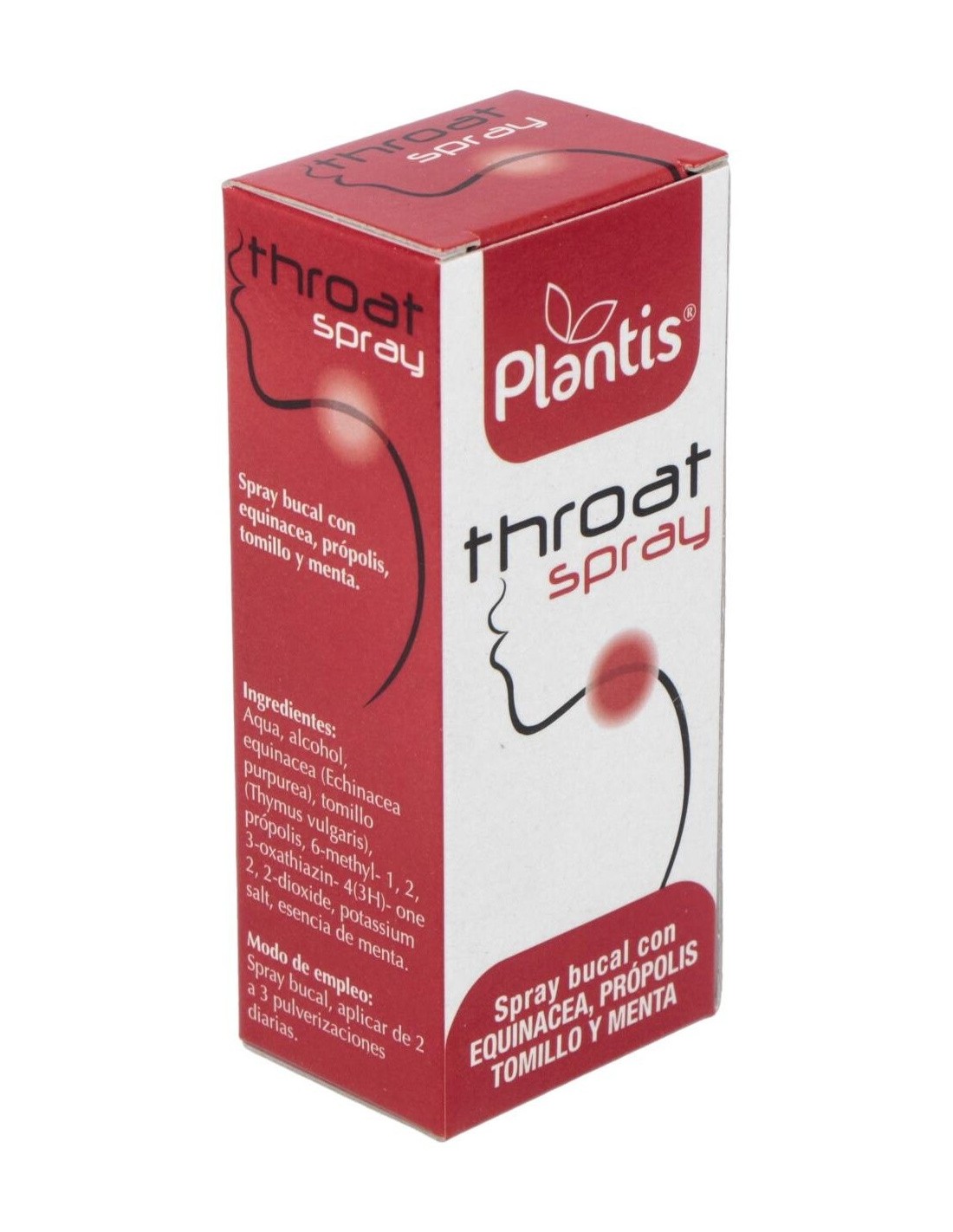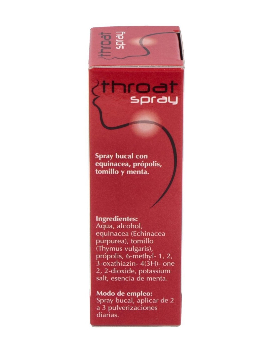 Ingredientes:Aqua, alcohol, equinacea (Echinacea purpurea), tomillo (Thymus vulgaris), própolis, 6- methyl-1.2.3-oxathiazin-4(3H)-one 2. 2-dioxide, potassium salt, esencia de menta.Modo de empleo:Aplicar de 2 a 3 pulverizaciones diarias.Presentación:Spray de 30 ml.