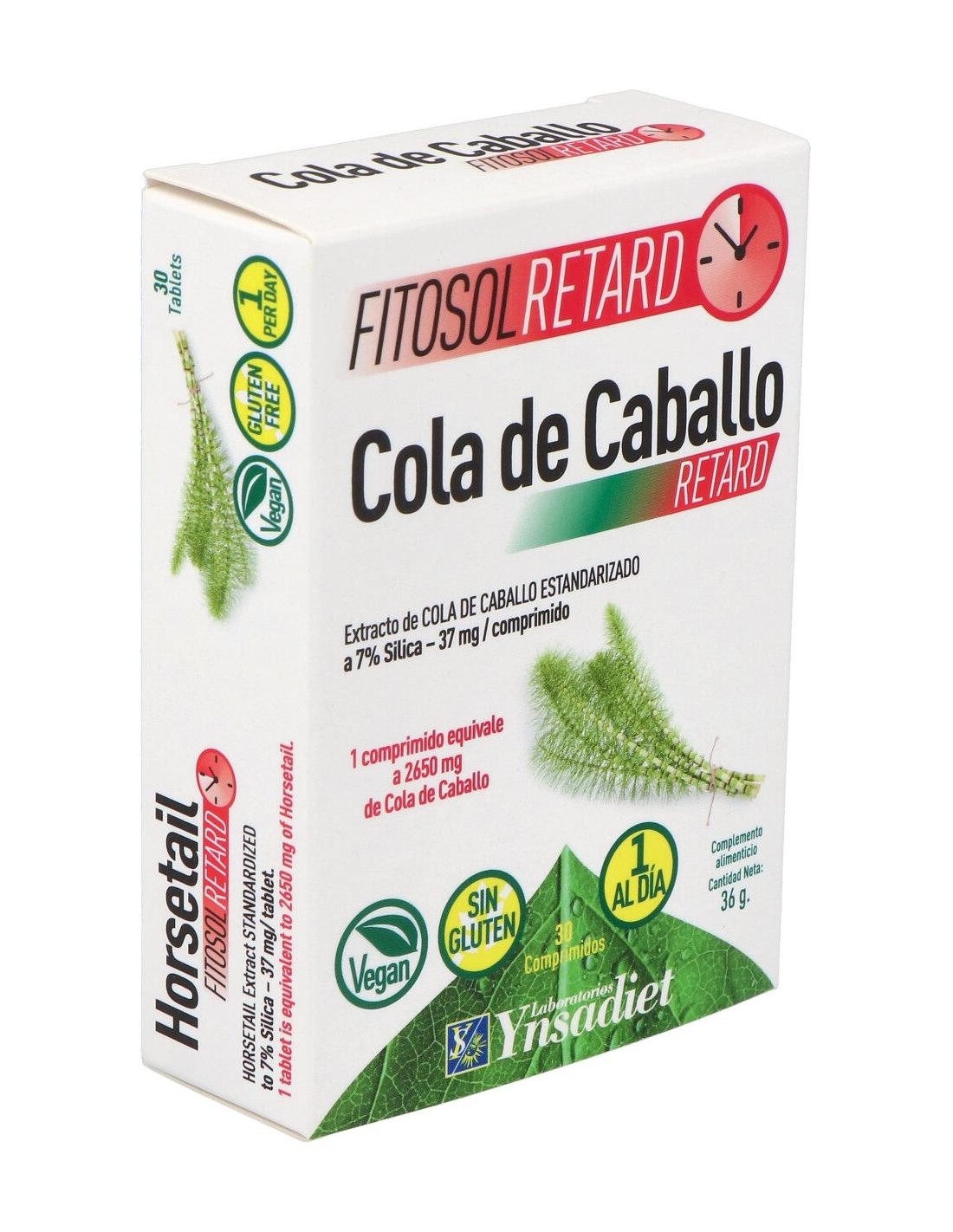 Este producto es de la marca Ynsadiet. Está indicado para beneficiar al cuerpo cuando sufre de retención de líquidos. El ingrediente principal de este complemento es la cola de caballo. Produce un efecto diurético, esto es, que los riñones se benefician de una mayor liberación de sodio en la orina. Las articulaciones también son favorecidas por la sílica que contiene, ya que esta previene la aparición de afecciones en ellas.