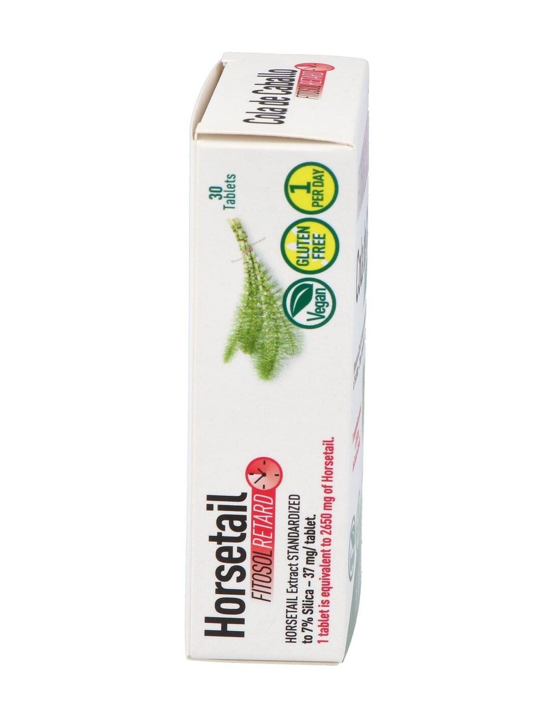 Cola de caballo extracto seco (5:1) (Equisetum arvense L., parte aérea) 530mg, Silica 7% 37,1mg.