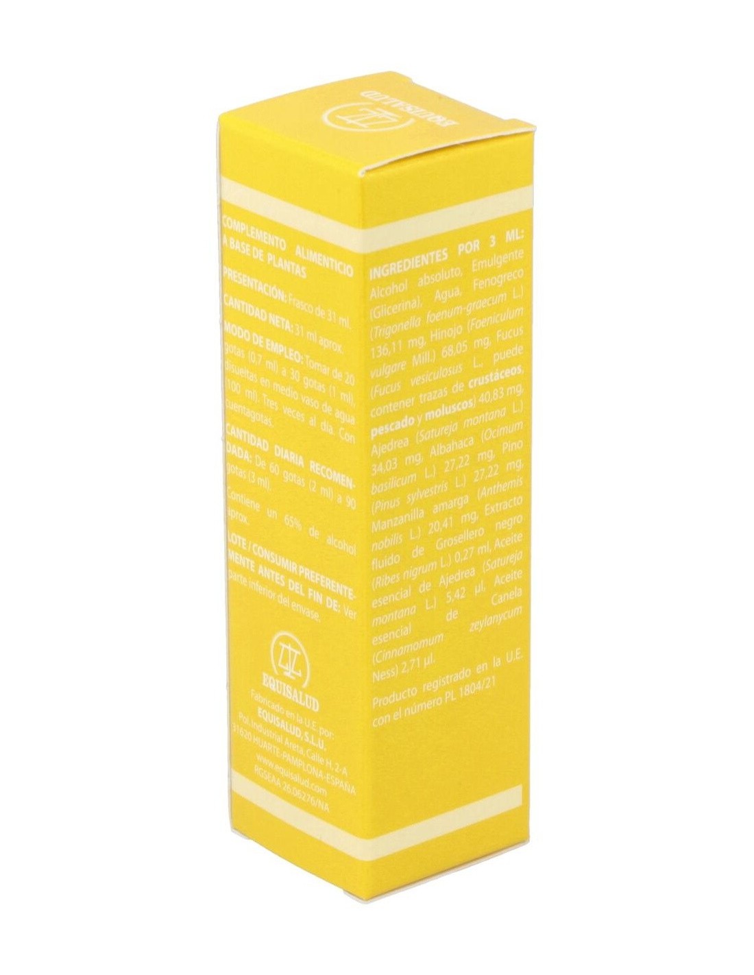 El vacío de YANG de riñón se expresa con pérdida de la función de recalentamiento general y sobre todo de las extremidades, disminución de las capacidades sexuales, desbordamiento de la perversión del agua, es decir, acumulación de líquidos y un exceso de frío YIN interno. El YANG falla y con él falla la transformación de los líquidos. Su etiología es la vejez, patologías crónicas o un exceso de actividad sexual. Manifestaciones asociadas a este síndrome: dolores óseos que se agravan con el frío, miedo al frío, encorvamiento, dolor y frío en rodillas y zona lumbar, lengua pálida e hinchada, lengua con saburra blanca, pulso profundo, blando y lento, diarreas al amanecer (a veces incluso con alimentos no digeridos), edema maleolar, tos, asma o ahogos con el esfuerzo, lumbalgias que se alivian con el reposo (otras producidas por vacío de sangre o por ataque de las energías perversas se agravan a la noche y mejoran con el movimiento), esterilidad masculina y femenina, impotencia, vértigos y cara pálida (no se nutre bien el cerebro y la médula), anorexia, distensión abdominal, sensación de hartazgo, heces pastosas y mal formadas, diarreas, astenia en los cuatro miembros, digestiones lentas, cara pálida o amarilla y sin brillo, adelgazamiento, falta de alimento, posibles leucorreas líquidas y abundantes, vejez prematura, sudoración fácil despierto, no se suda en reposo (en un vacío de YIN hay sudoración dormido). Enfermedades propias de este síndrome son: ralentización metabólica, vejez prematura, degeneración ósea, ciertas caries, piorrea, etc. Composición:Ajedrea (Satureja montana), Albahaca (Ocimum basilicum), Fenogreco (Trigonella foenum-graecum), Fucus (Fucus vesiculosus), Hinojo (Foeniculum vulgare), Manzanilla Amarga (Anthemis nobilis), Pino (Pinus sylvestris), Grosellero negro (Ribes nigrum), Canela (Cinnamomum zeylanicum). Modo de empleo:Tomar de 20 a 30 gotas disueltas en medio vaso de agua, 3 veces al día. Presentación:Frasco de 31 ml.