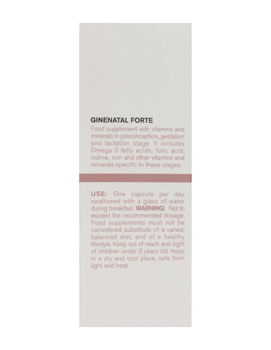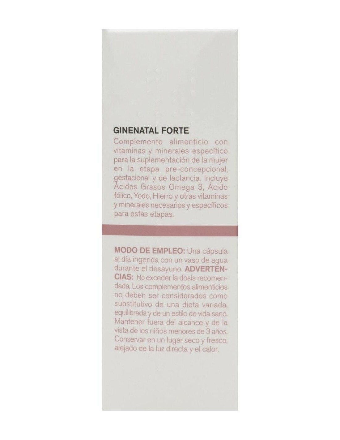 Complemento alimenticio con vitaminas y minerales específico para la suplementación de la mujer en la etapa pre-concepcional, gestacional y de lactancia. Incluye Ácidos Grasos Omega 3, Ácido fólico, Yodo, Hierro y otras vitaminas y minerales necesarios y específicos para estas etapas. Clínicamente testado.