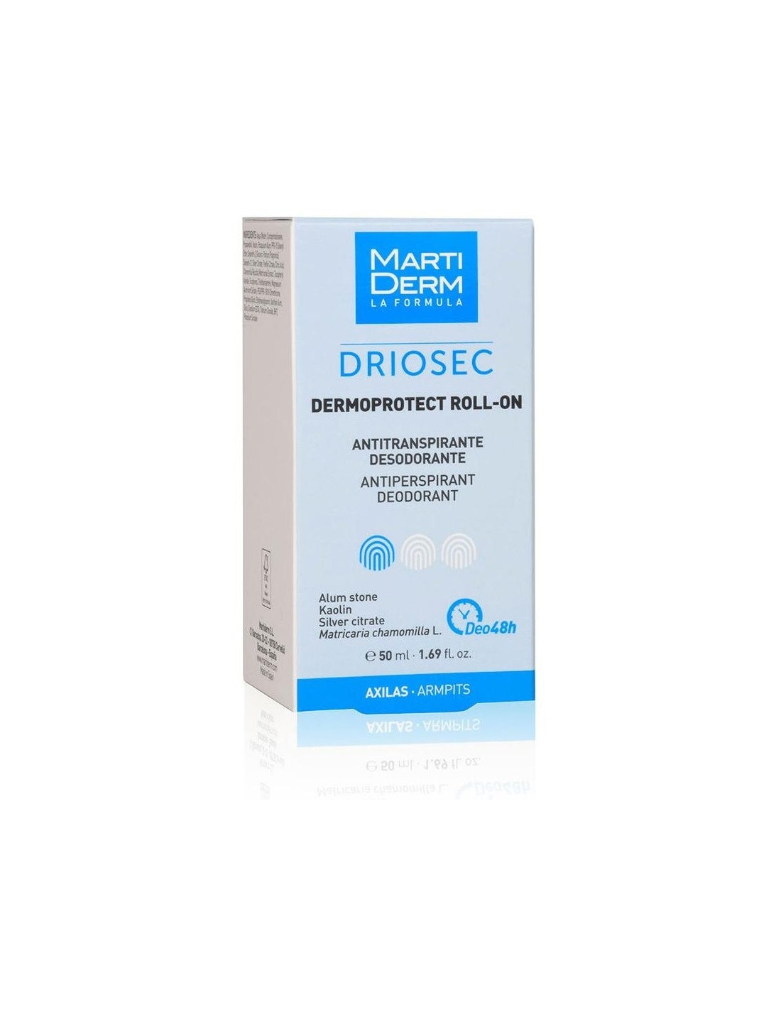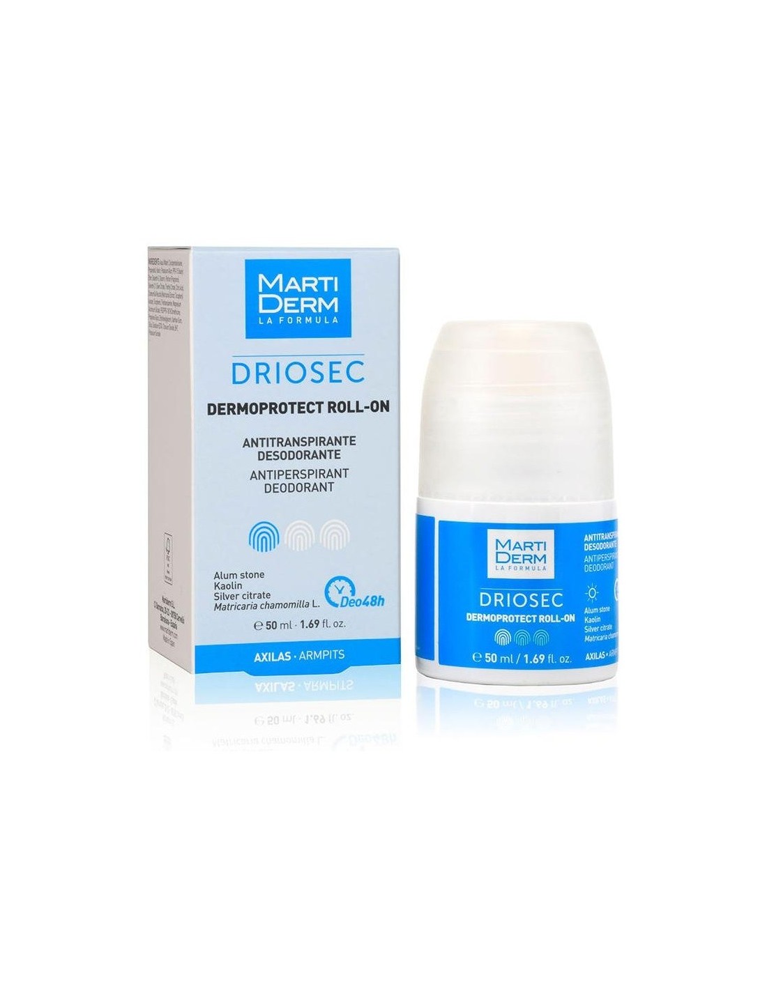 MARTIDERM | Martiderm Driosec Dermoprotect Roll On 50mlEl Roll on Dermoprotect Driosec es un antitranspirante y desodorante que controla la sudoración normal de las axilas y elimina el mal olor. Además, el Roll on Dermoprotect no mancha la ropa oscura ni blanca, tampoco irrita la piel y te dejará una sensación de limpieza y frescor mientras lo lleves puesto.