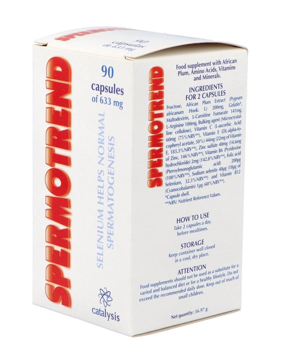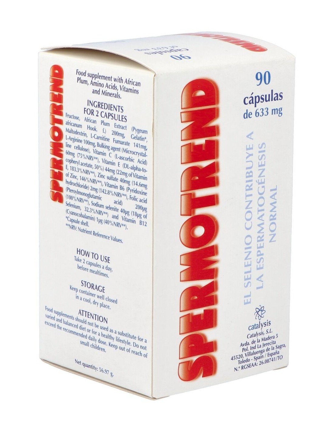**Spermotrend 90Cap. de Catalysis** es un suplemento diseñado para personas que buscan apoyar su bienestar general mediante una fórmula cuidadosamente desarrollada. Está pensado para quienes desean complementar su dieta con ingredientes seleccionados que contribuyen al equilibrio corporal.