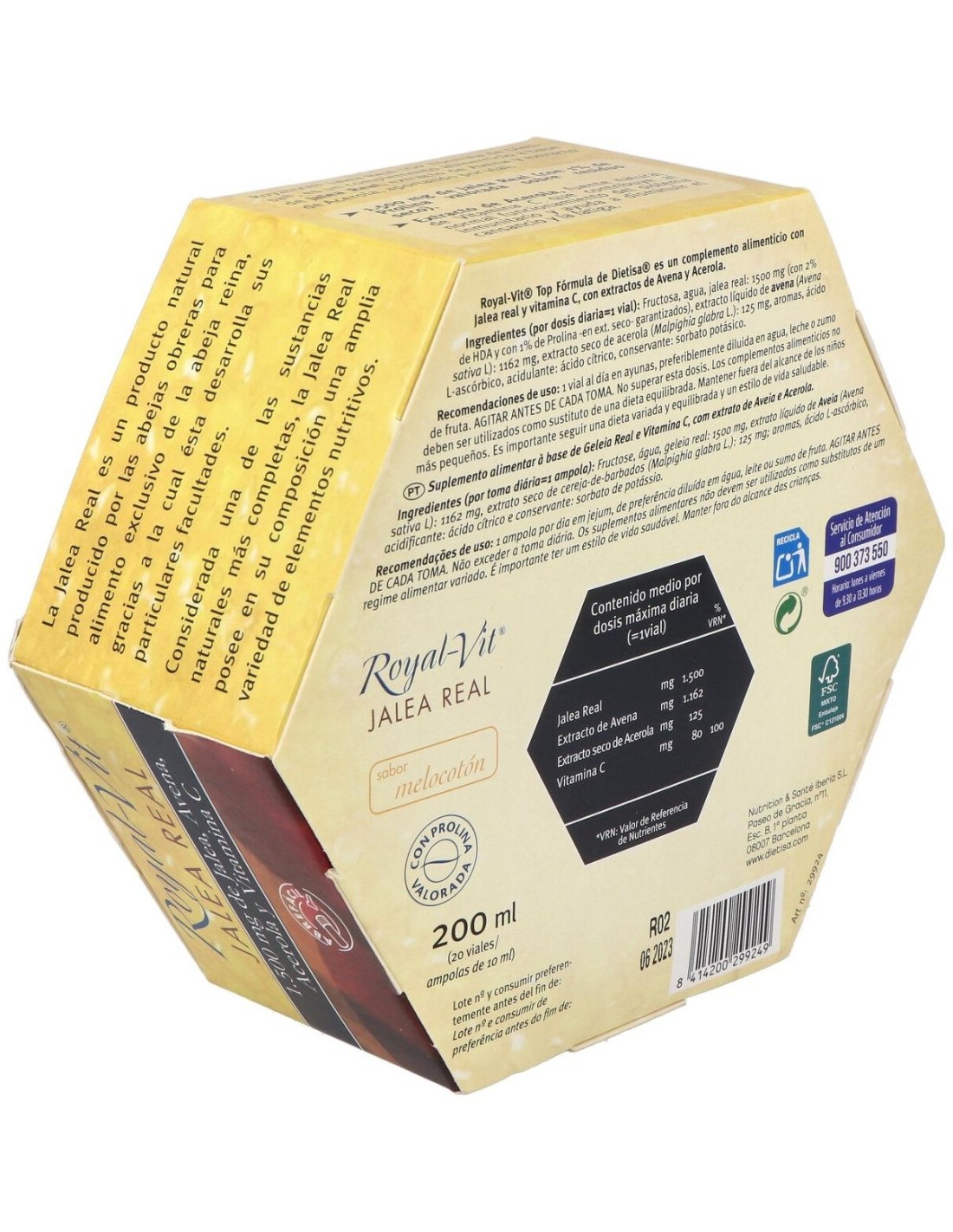 Dietisa jalea real royalvit top fórmula es un complemento alimenticio que combate el cansancio y la fatiga. Gracias a su formulación contribuye al metabolismo energético normal.