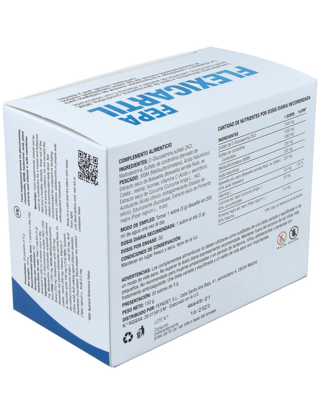 Fepa-Flexicartil 30Sbrs. de Fepadiet es un suplemento diseñado para personas que buscan apoyar la salud articular y el bienestar general. Su formulación está pensada para quienes desean mantener la movilidad y flexibilidad en su rutina diaria.