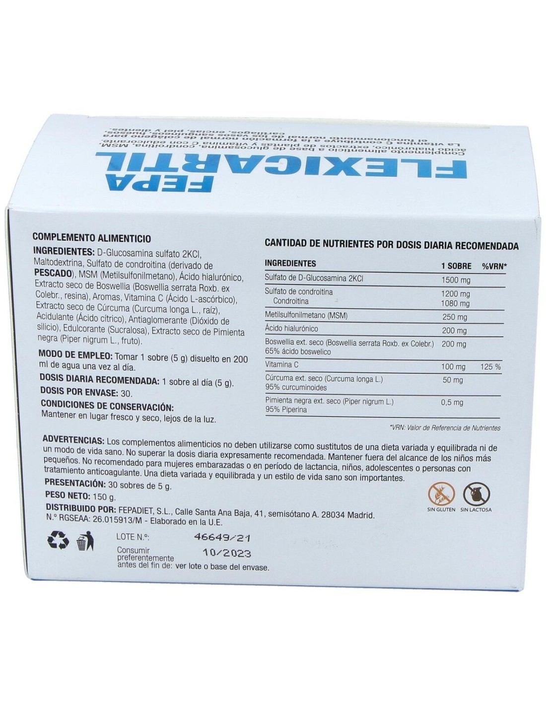 Fepa-Flexicartil 30Sbrs. de Fepadiet ofrece una opción práctica para quienes desean apoyar la salud de sus articulaciones mediante un suplemento con una formulación equilibrada y accesible.