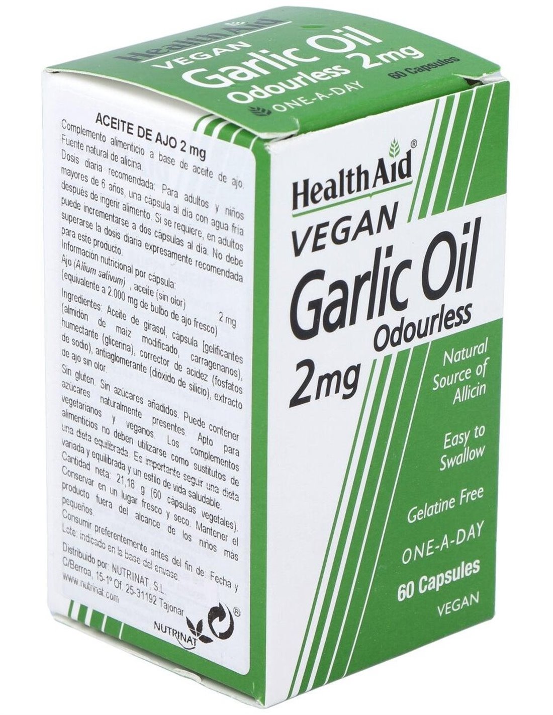 Aceite De Ajo (Garlic Oil) 2Mg. 60Cap. Health Aid de Health Aid es un suplemento diseñado para personas que buscan incorporar los compuestos naturales del ajo en su rutina diaria de manera práctica y dosificada. Ideal para quienes prefieren una presentación en cápsulas que facilita su consumo.