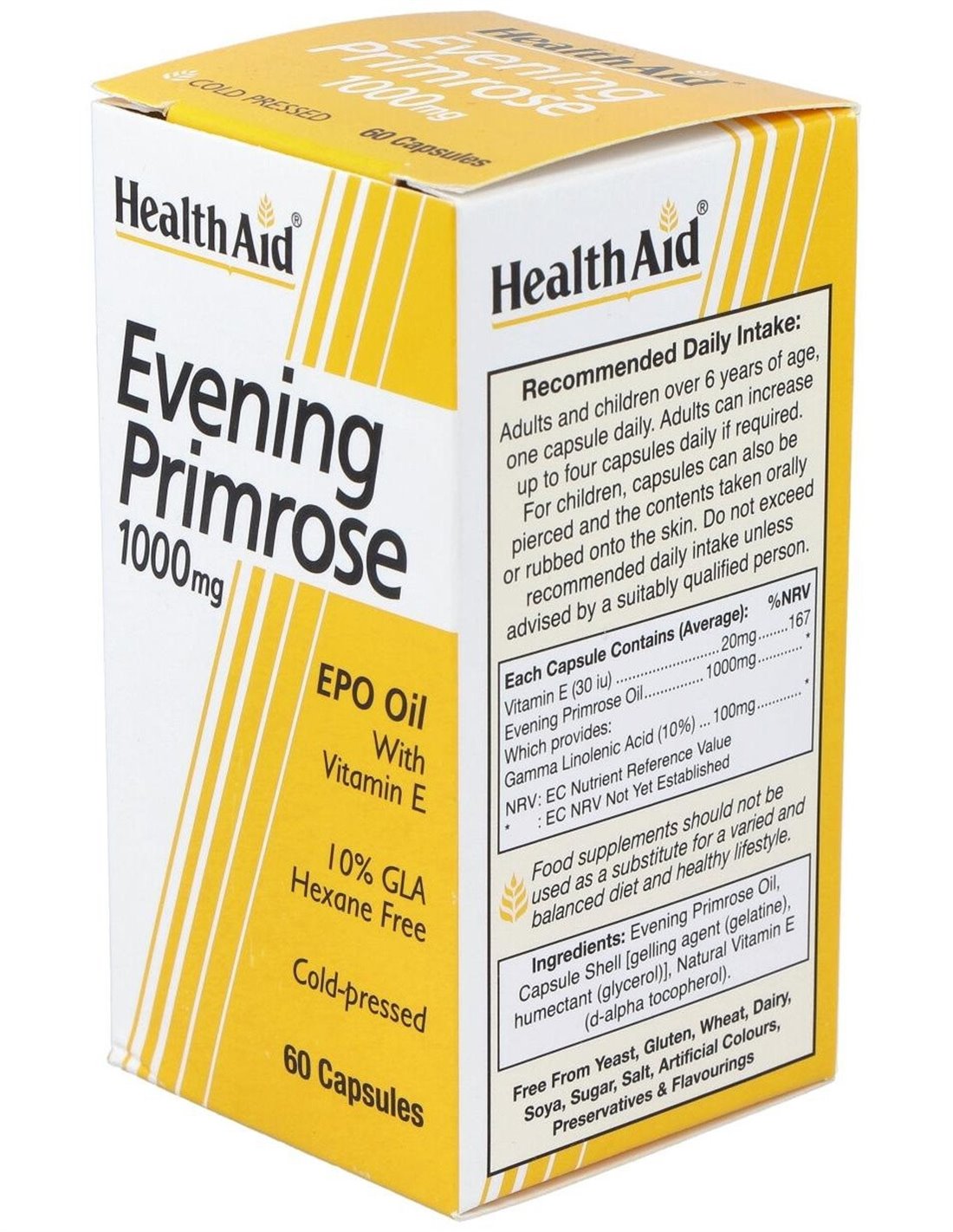 Aceite De Onagra 1.000Mg. 60Cap. Health Aid de Health Aid es un suplemento pensado para personas que buscan incorporar ácidos grasos esenciales en su rutina diaria. Su formulación está diseñada para quienes valoran una fuente natural de ácido gamma-linolénico en una presentación cómoda y dosificada.