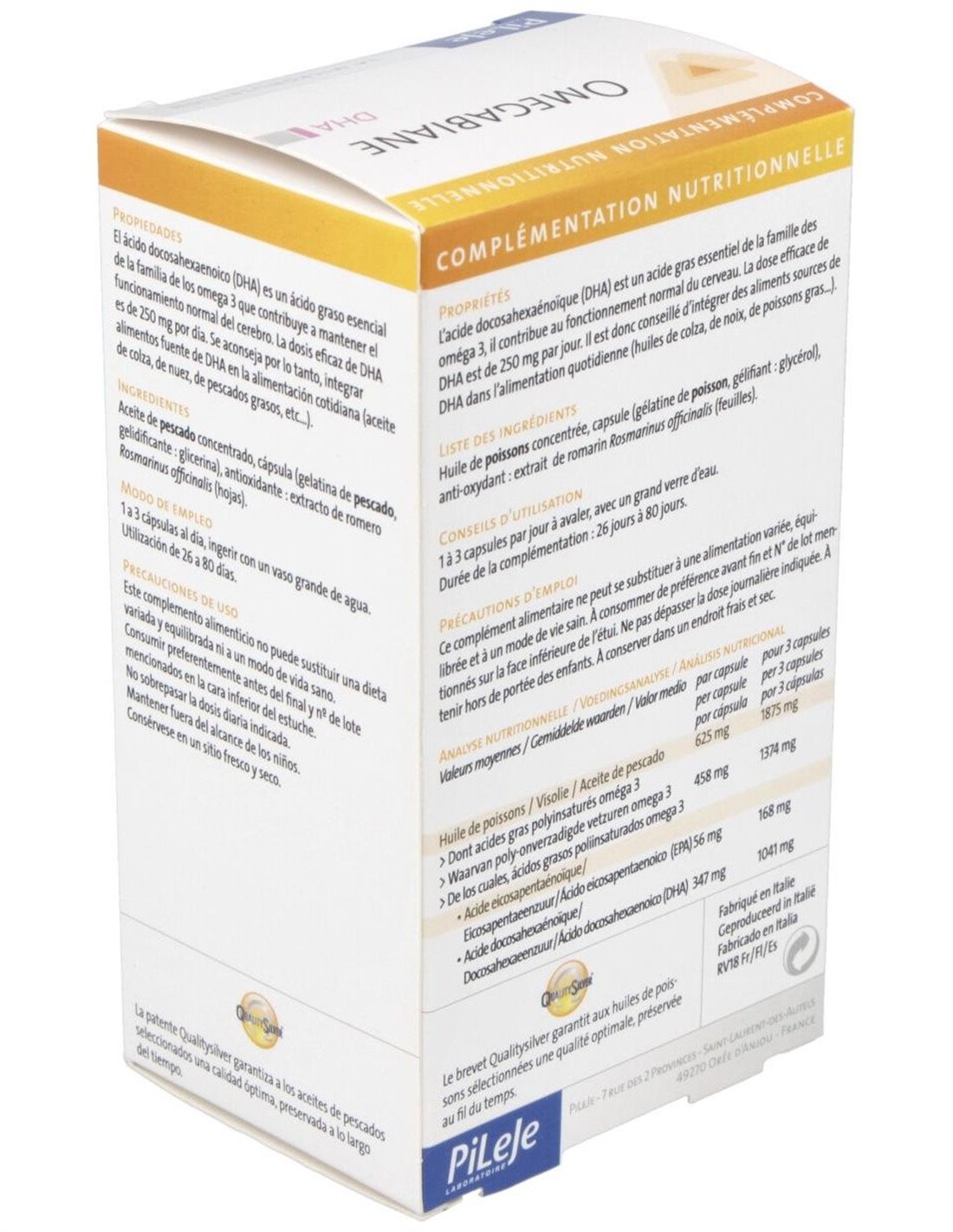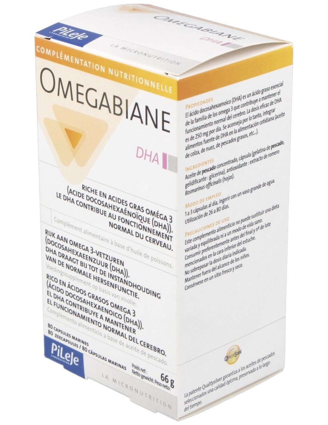 Omegabiane Dha 80Cap. de Pileje es un suplemento diseñado para personas que buscan complementar su dieta con ácidos grasos esenciales de alta calidad. Es adecuado para quienes desean mantener un aporte constante de DHA en su rutina diaria.