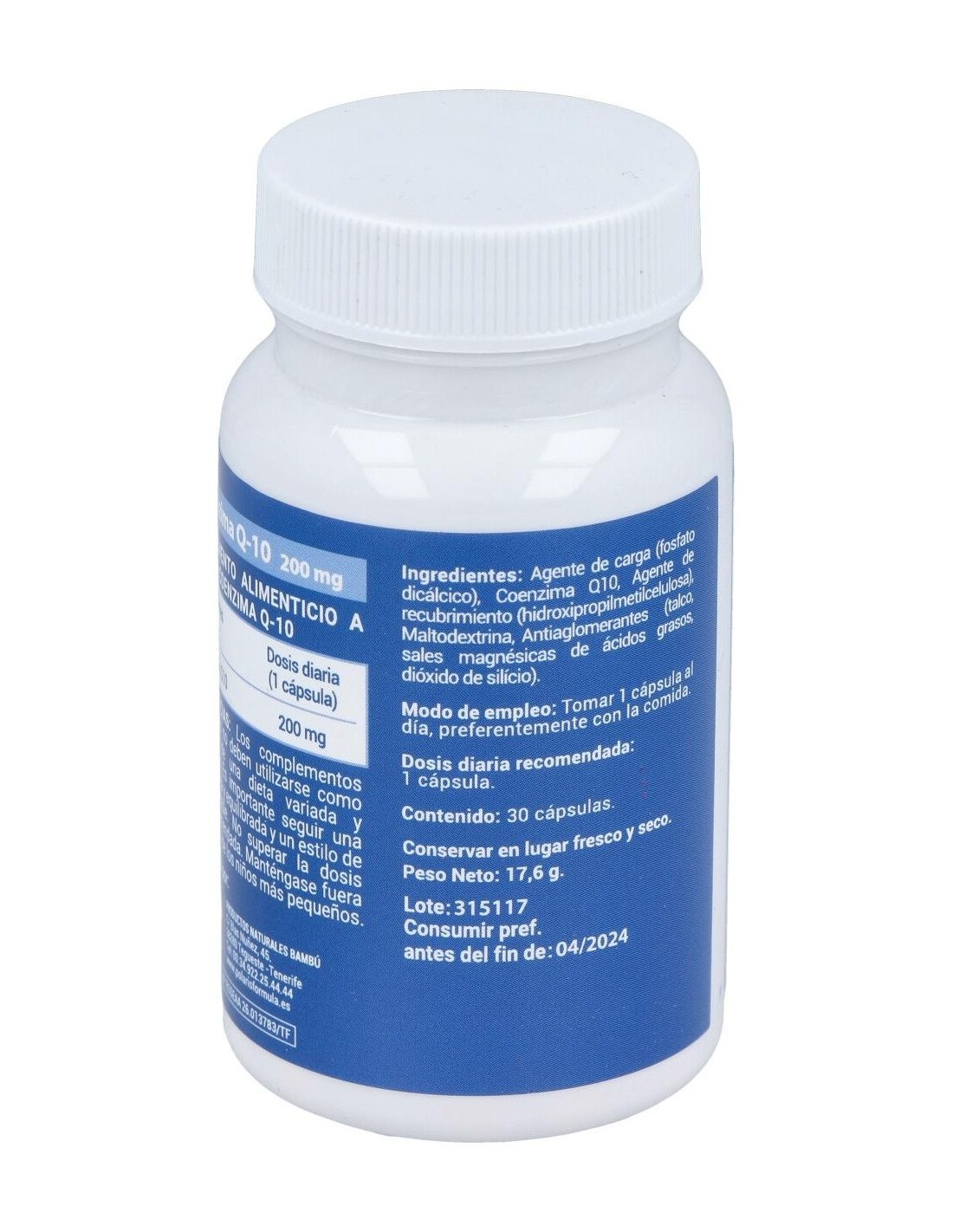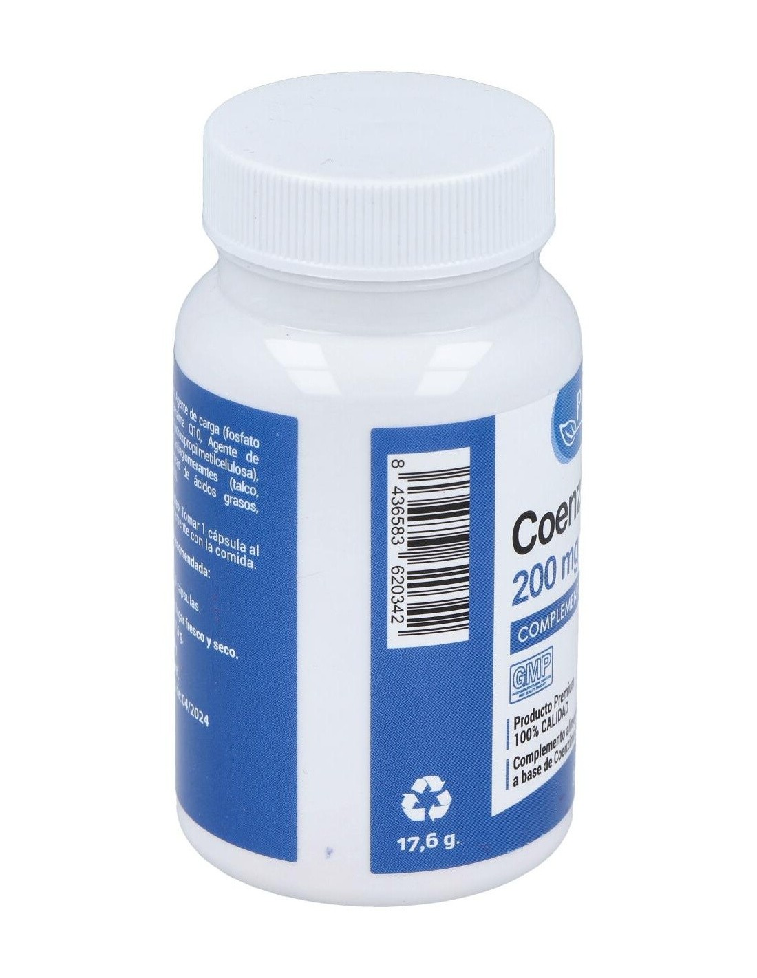 - Cada cápsula contiene 200 mg de coenzima Q10, un compuesto que participa en la producción de energía a nivel celular.