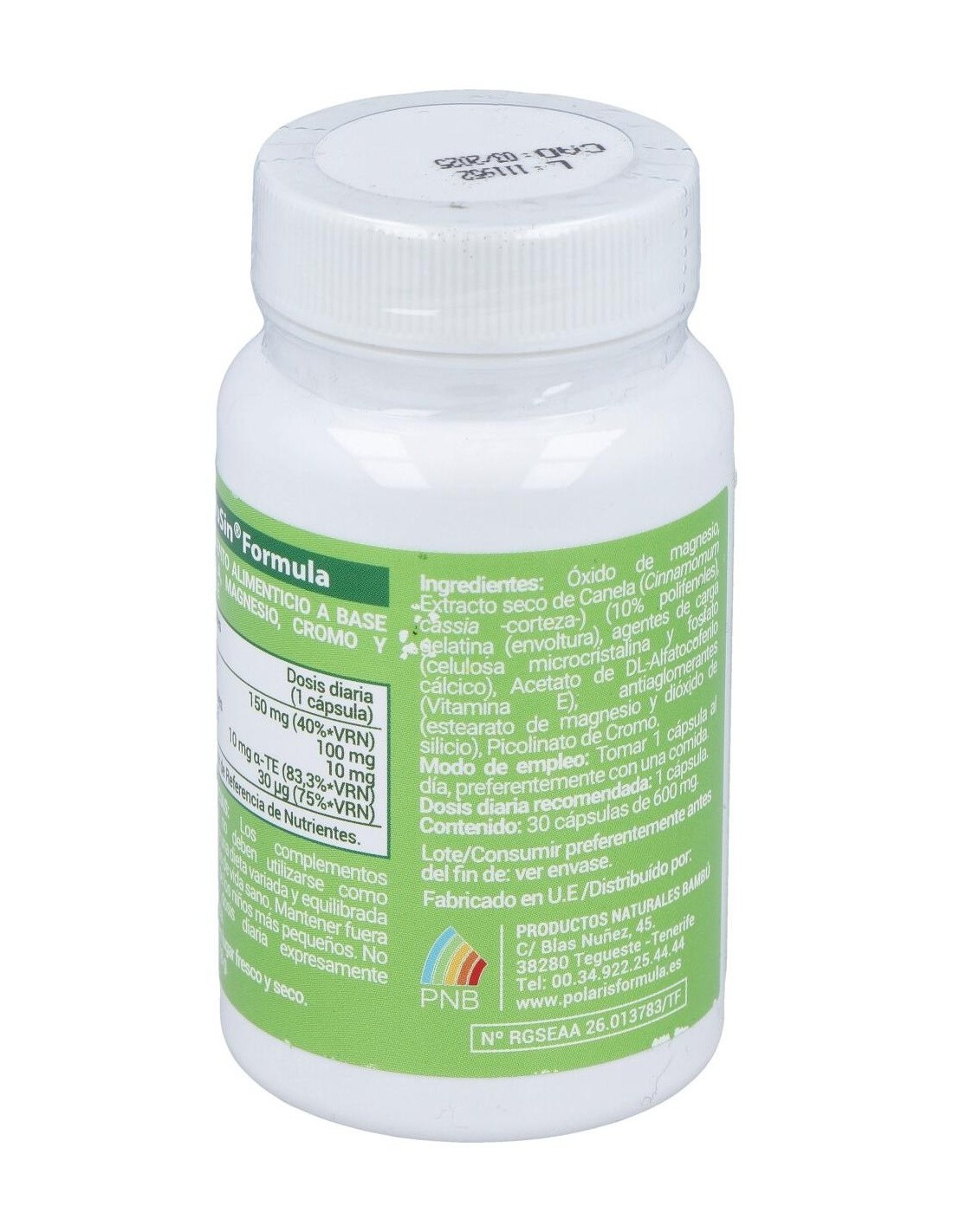 Glusin (Canela + Magnesio) 600Mg. 30Cap. de Polaris es un suplemento diseñado para personas que buscan complementar su dieta con ingredientes naturales que aportan magnesio y canela. Este producto está pensado para quienes desean incorporar estos componentes en su rutina diaria de manera práctica y dosificada.