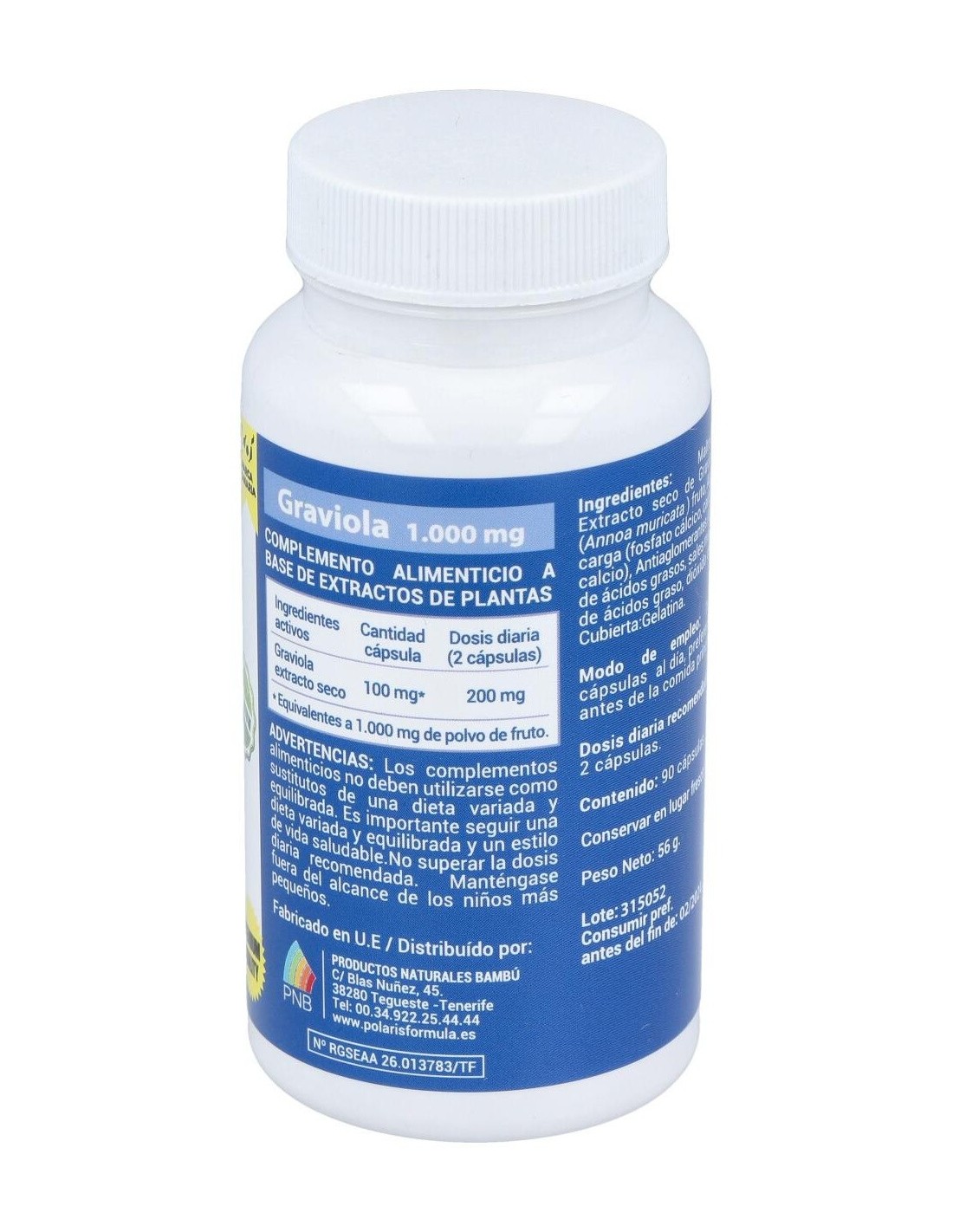 Graviola 1000Mg. 90Cap. de Polaris ofrece una forma práctica y dosificada para incorporar extracto de graviola en la alimentación cotidiana.