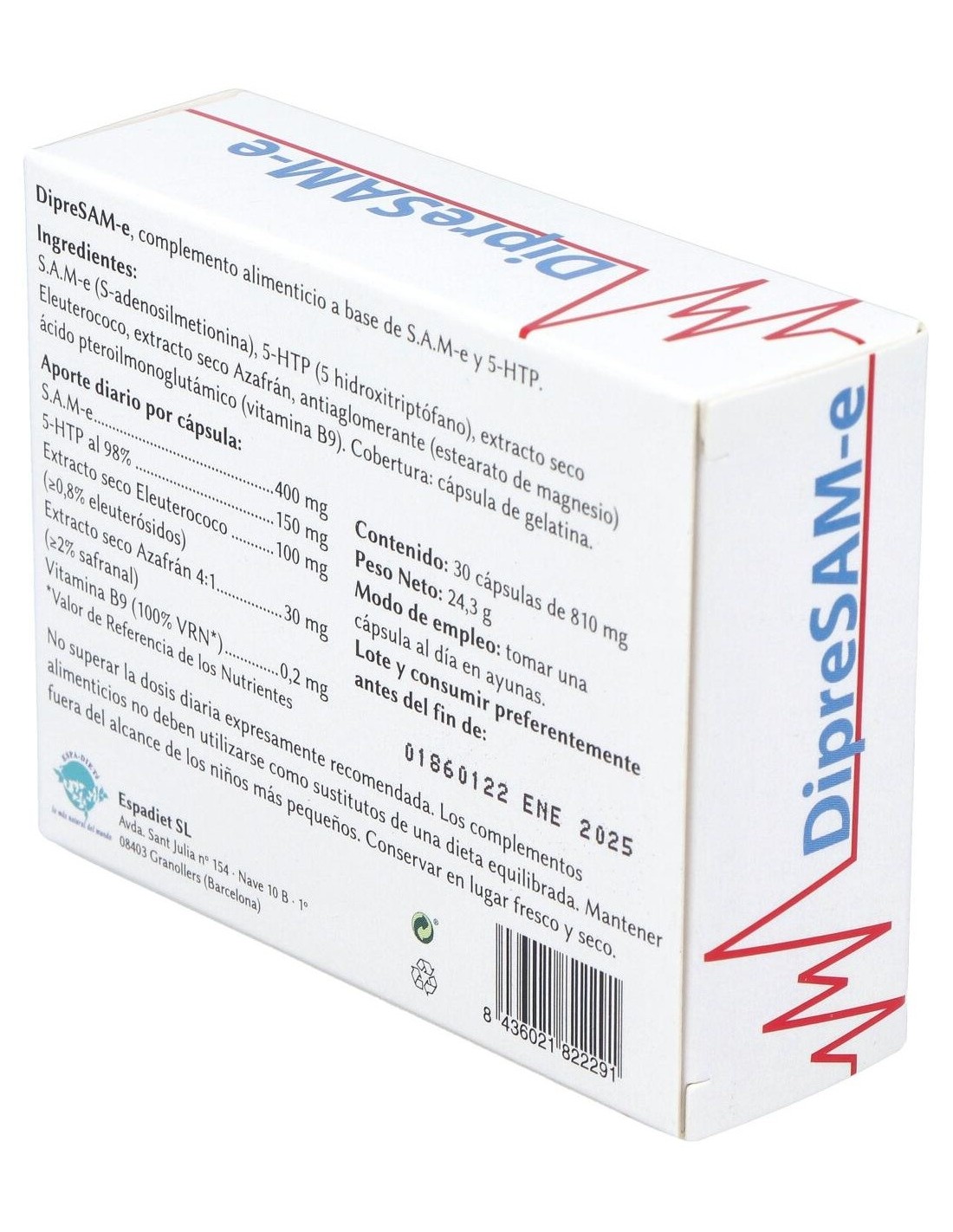 Dipresam-E 30Cap. de Espadiet es un complemento alimenticio para personas que buscan apoyar su bienestar emocional. Con ingredientes seleccionados, contribuye a mantener el equilibrio natural del estado de ánimo.