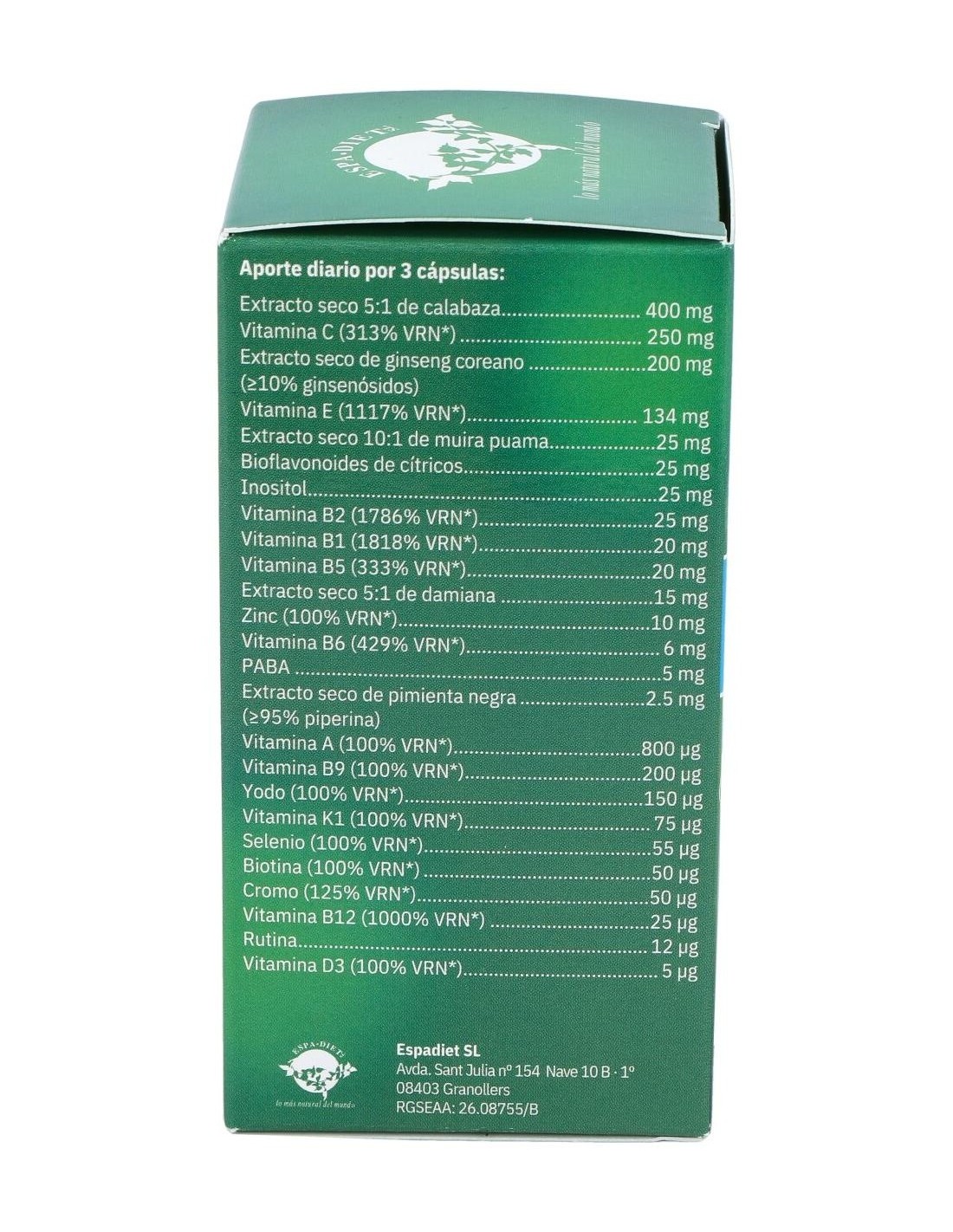 Aporta una completa combinación de nutrientes concretos, que en sinergia actúan para favorecer el correcto funcionamiento del sistema en las necesidades requeridas del día a día en el hombre. Aporta una completa combinación de nutrientes concretos, que en sinergia actúan para favorecer el correcto funcionamiento del sistema en las necesidades requeridas del día a día en el hombre.
