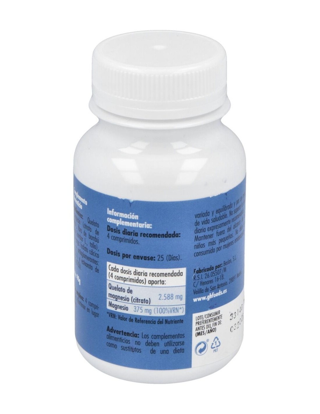 Quelato De Magnesio 100Comp. de Ghf ofrece una opción accesible para complementar la ingesta de magnesio, apoyando hábitos de consumo responsables y continuos.