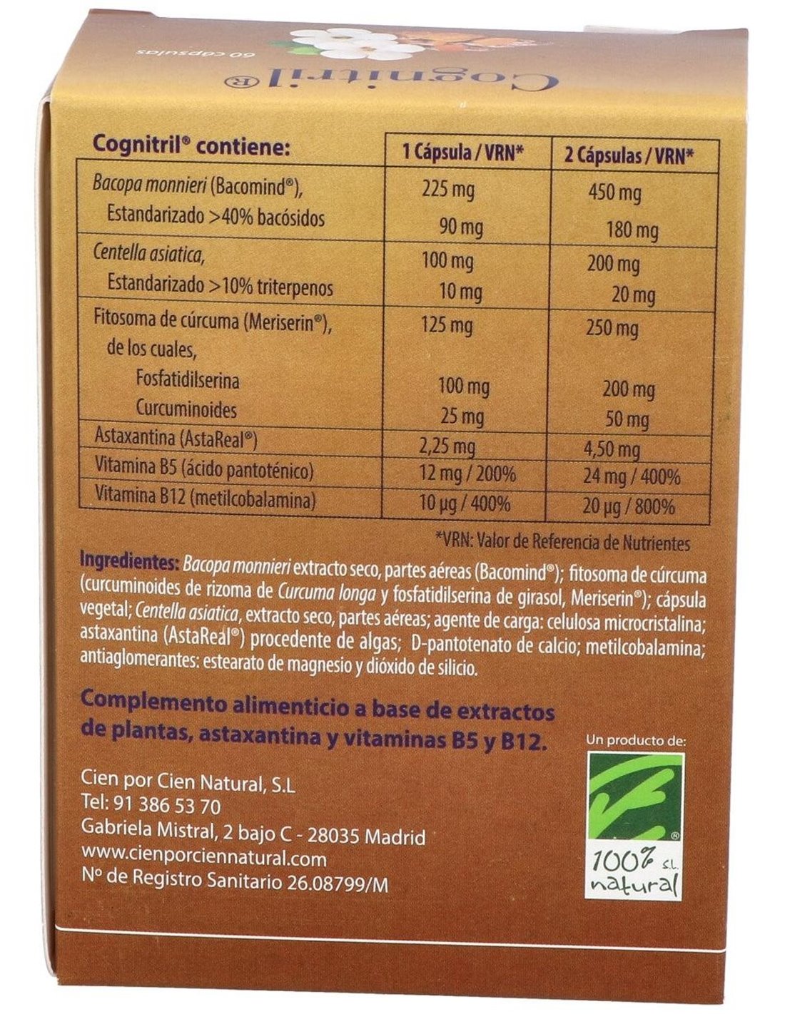 Cognitril 60Cap. de Cien Por Cien Natural ofrece una alternativa basada en ingredientes naturales para quienes buscan complementar su bienestar con un producto de formulación sencilla y clara.