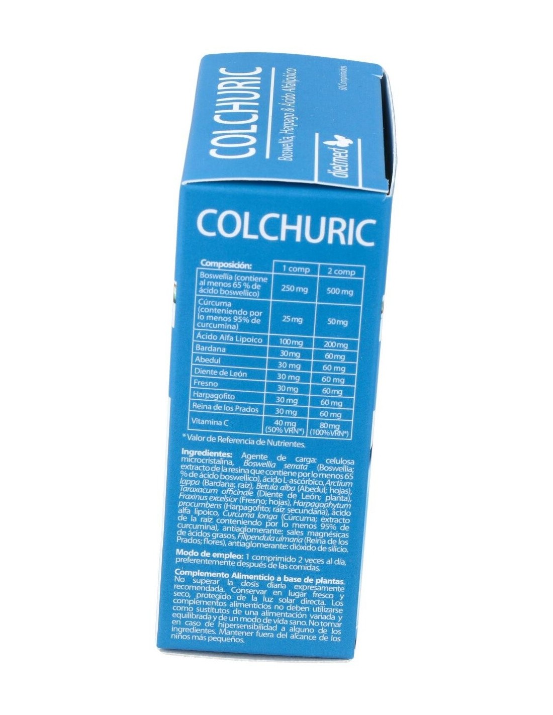 Elaborado con ingredientes seleccionados, Colchuric 60Comp. de Dietmed se presenta en un envase que garantiza la conservación óptima del producto. Su diseño facilita el almacenamiento y transporte, adaptándose a diferentes estilos de vida.