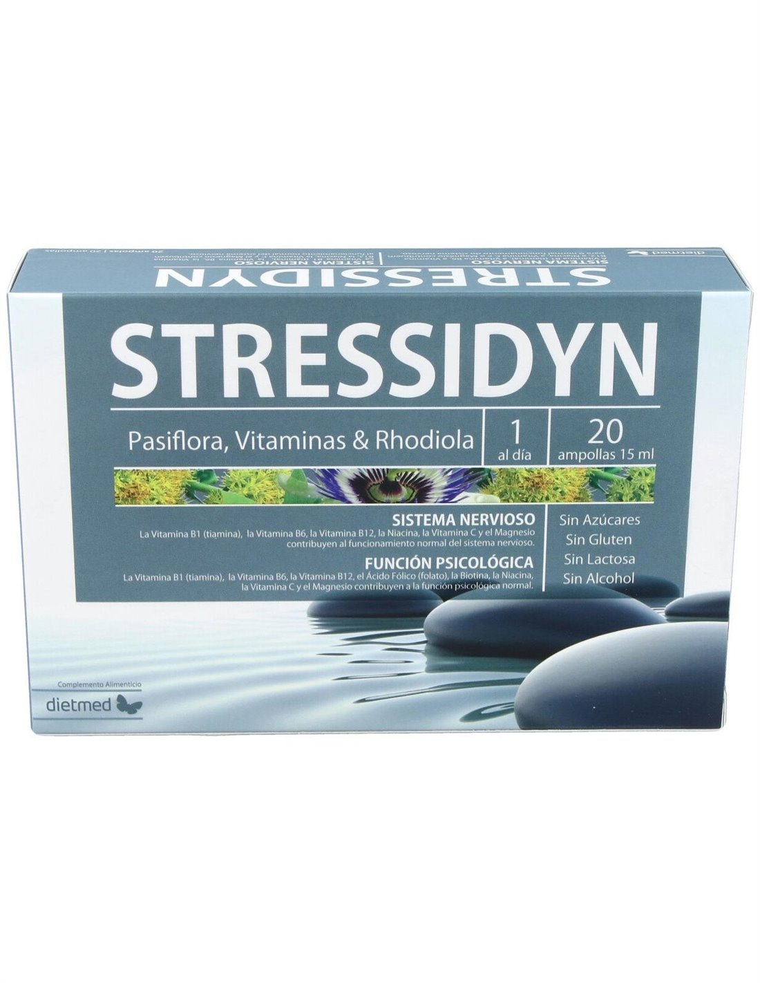 Stressidyn 20Amp. de Dietmed es un suplemento diseñado para personas que buscan apoyar su bienestar diario en situaciones de estrés y fatiga. Su formulación está orientada a contribuir en el mantenimiento del equilibrio emocional y la función normal del sistema nervioso.