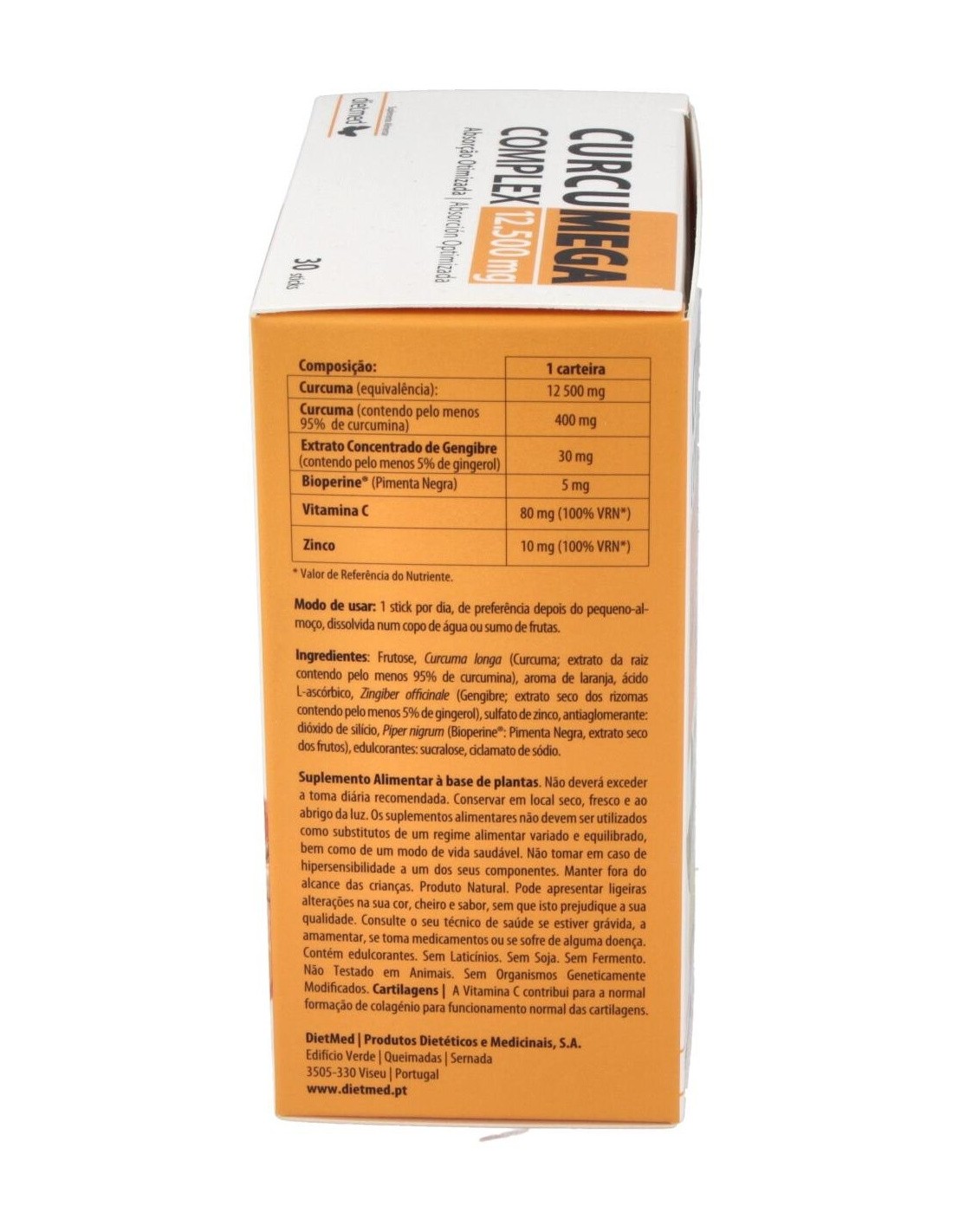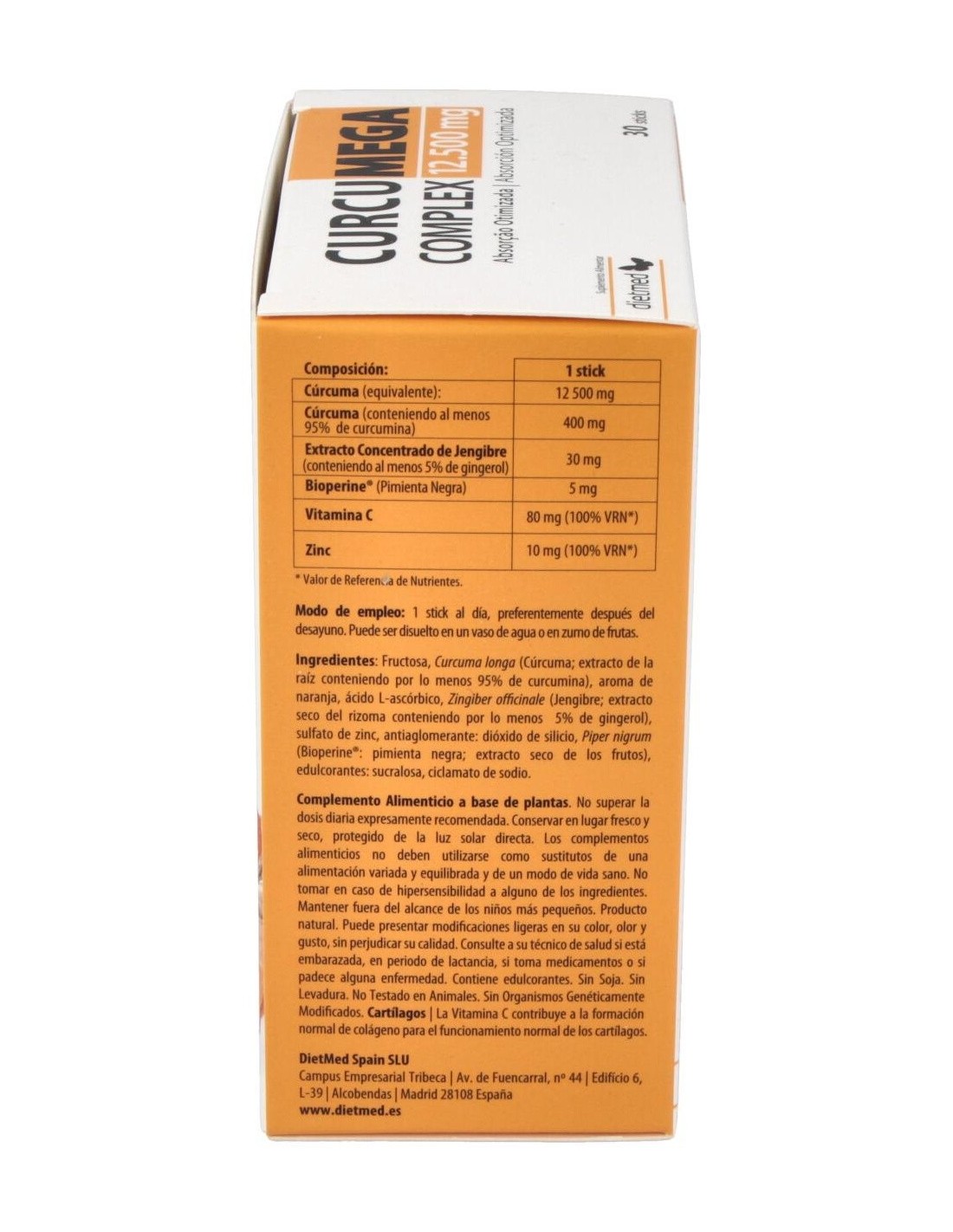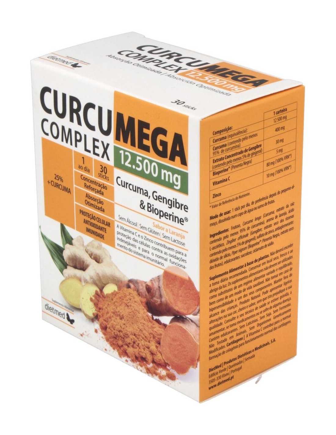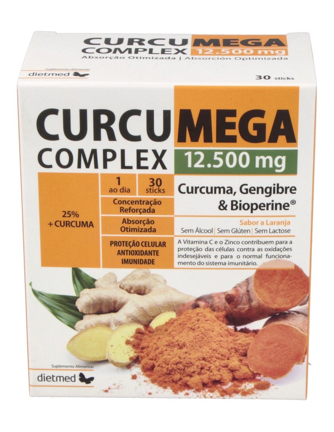 El Curcumega Complex 30Sticks de Dietmed es un suplemento para personas que buscan apoyo antioxidante y bienestar digestivo, formulado con curcumina y extractos naturales que facilitan su absorción y eficacia.