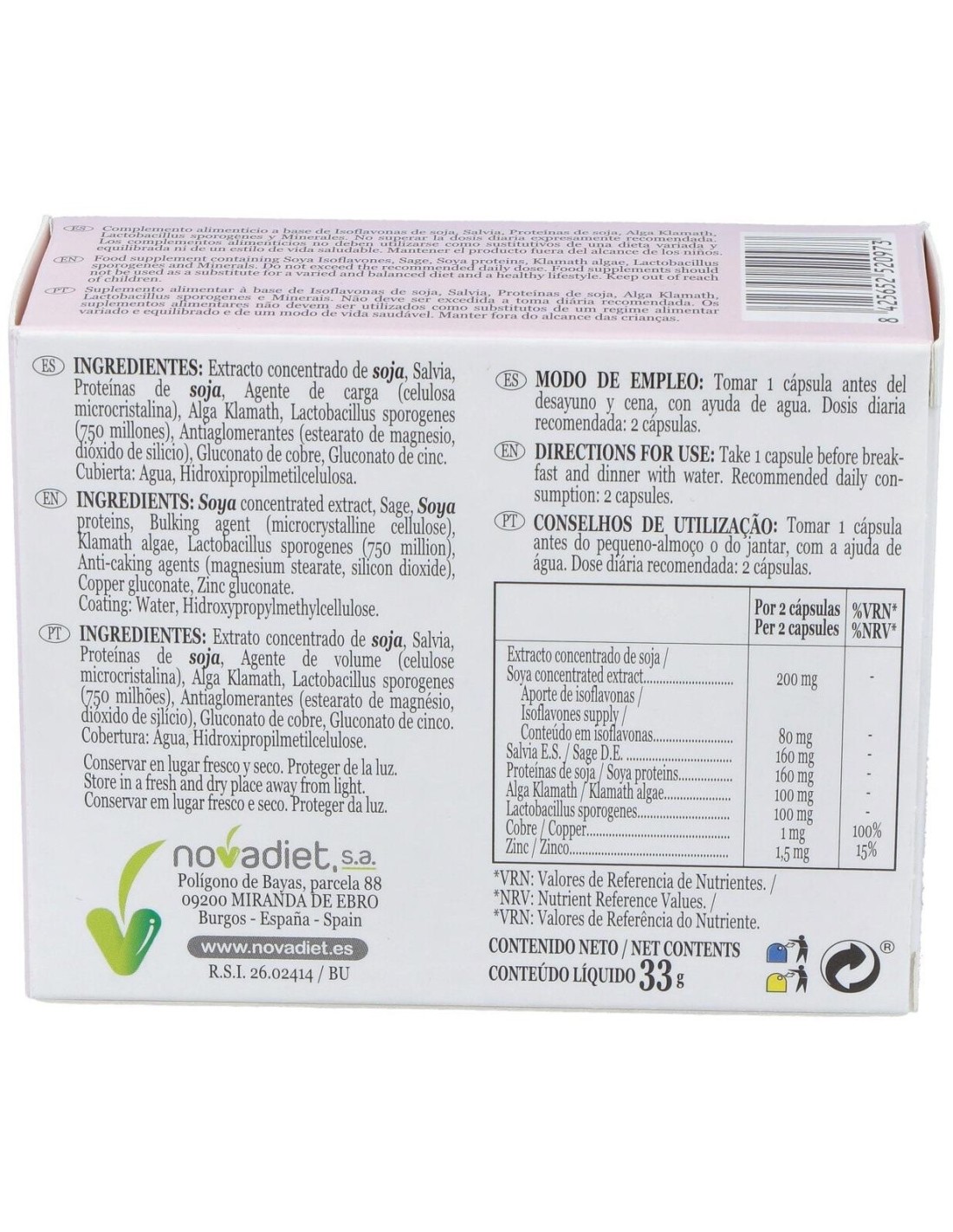 Climater Reforzado Envase de 60 cápsulas vegetales de Novadiet está formulado para personas que buscan un apoyo natural durante las etapas de cambios hormonales. Este complemento alimenticio ofrece una combinación específica de ingredientes que contribuyen al bienestar general en estos momentos.