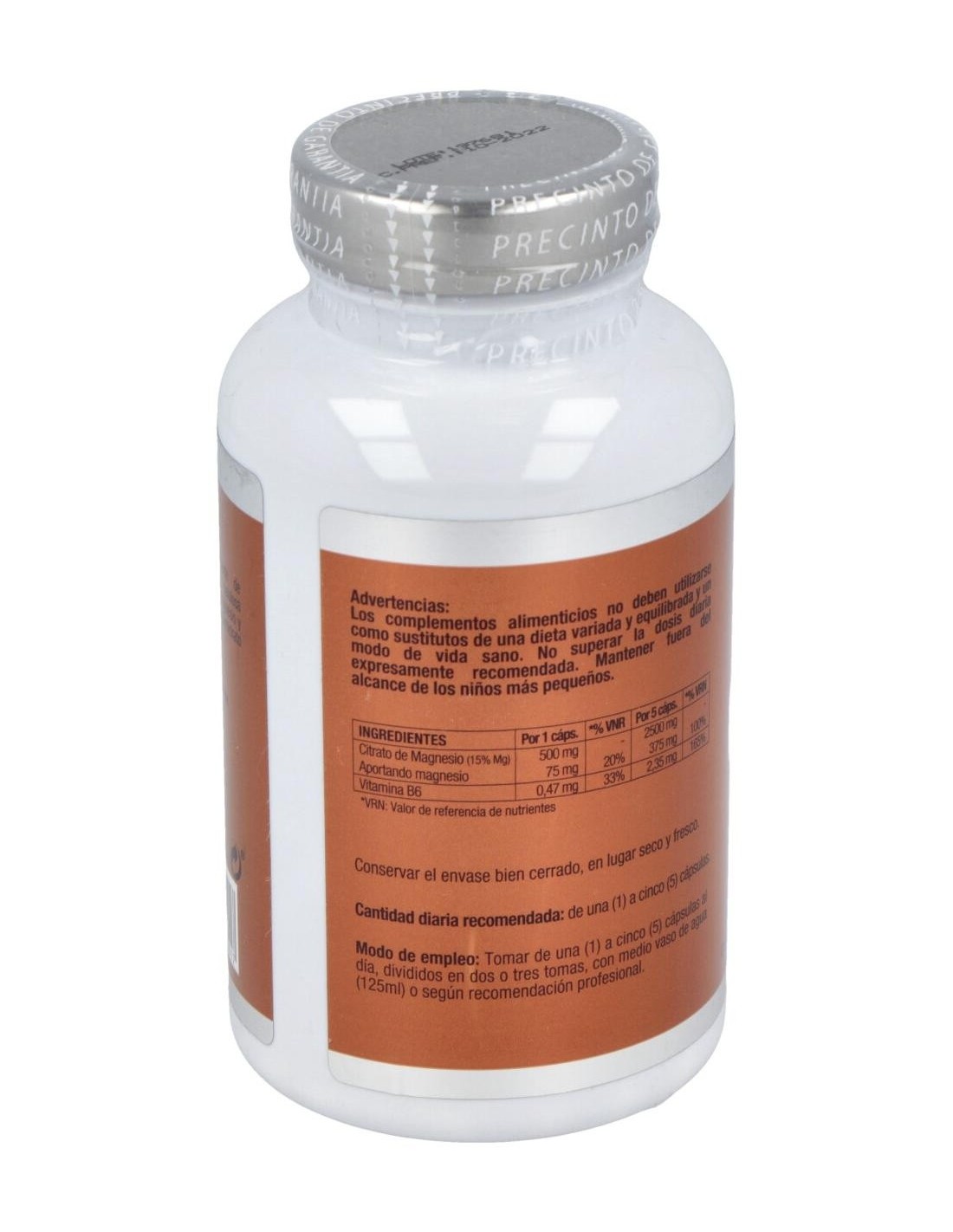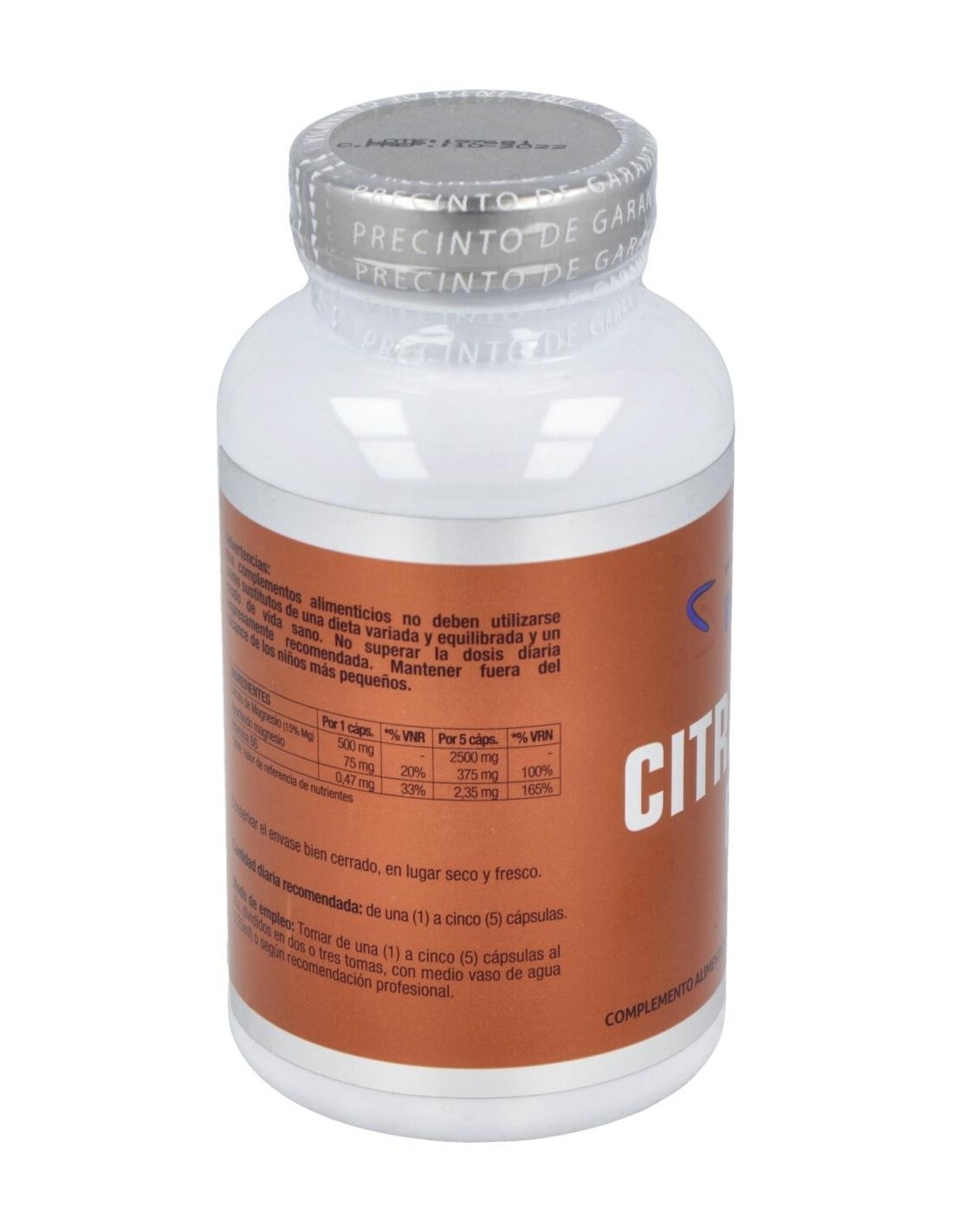 Complemento alimenticio a base de citrato de magnesio y vitamina B6. Las cápsulas de citrato de magnesio, contienen un 15% de magnesio elemental, es decir, 500 mg de citrato de magnesio contienen 75 mg de magnesio elemental.