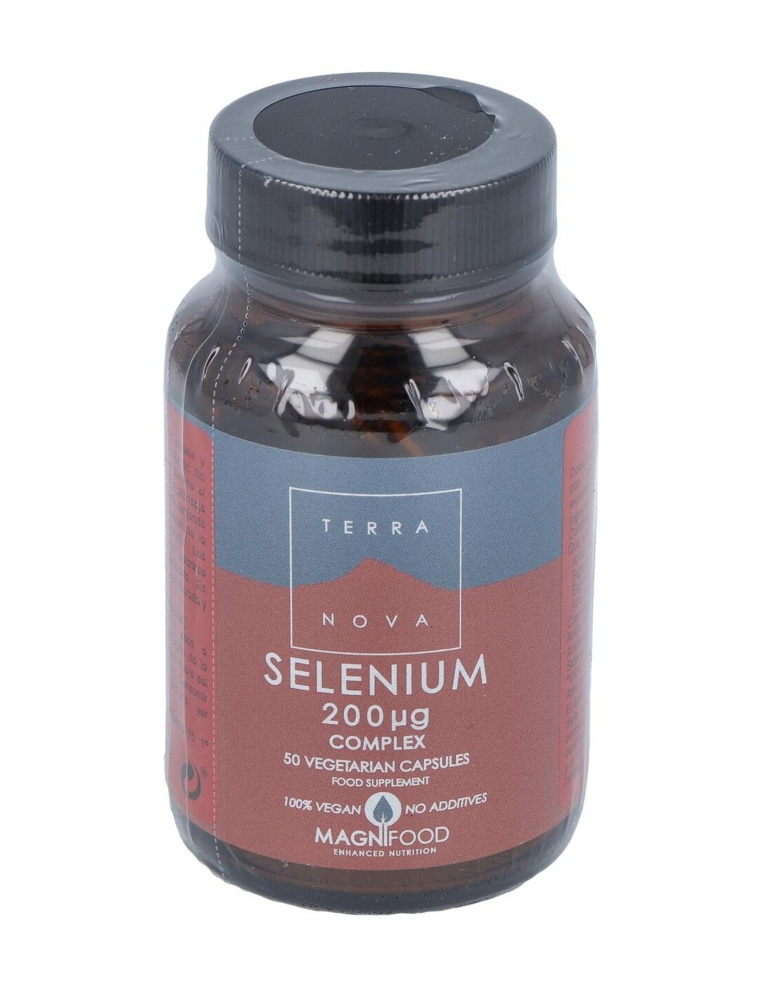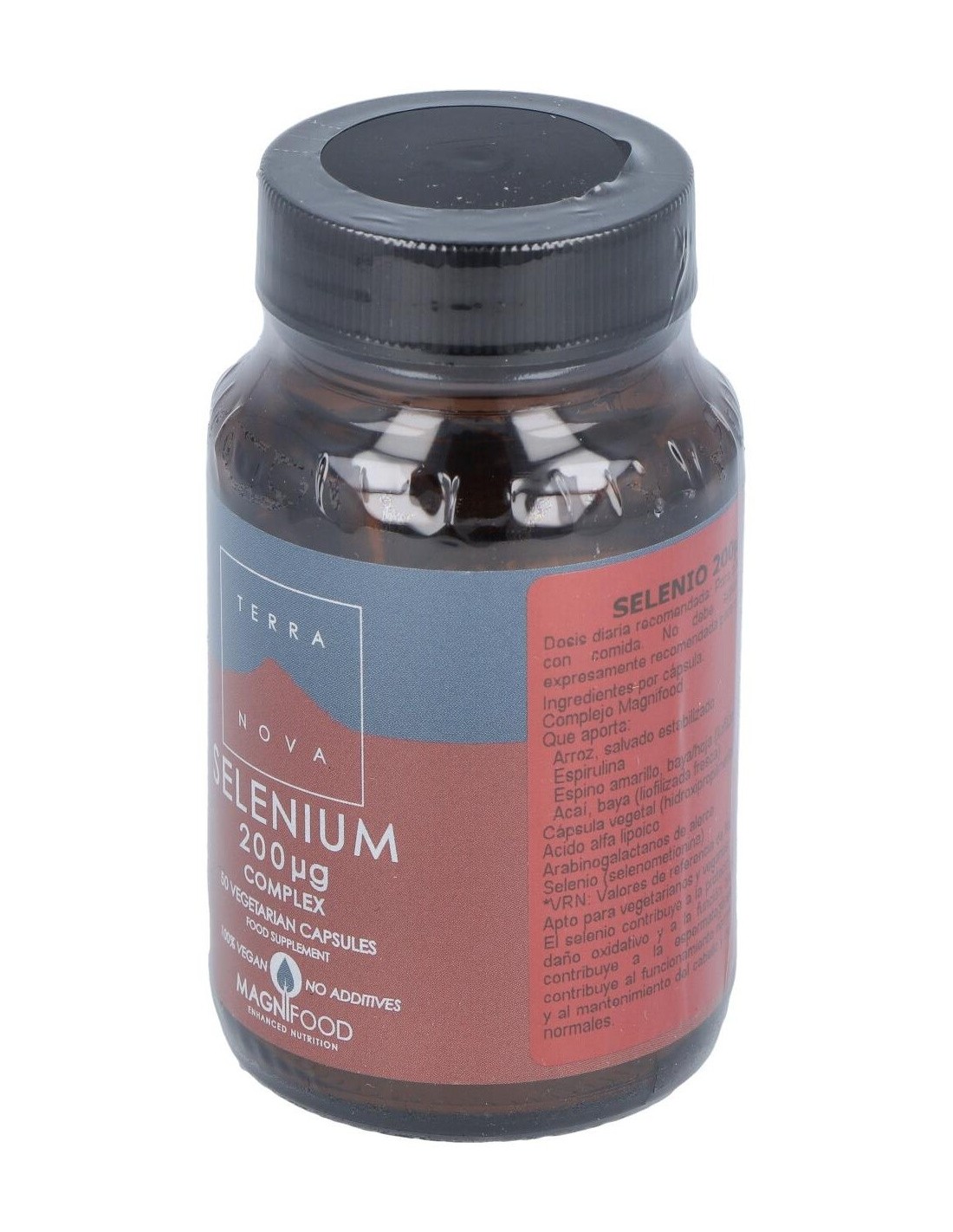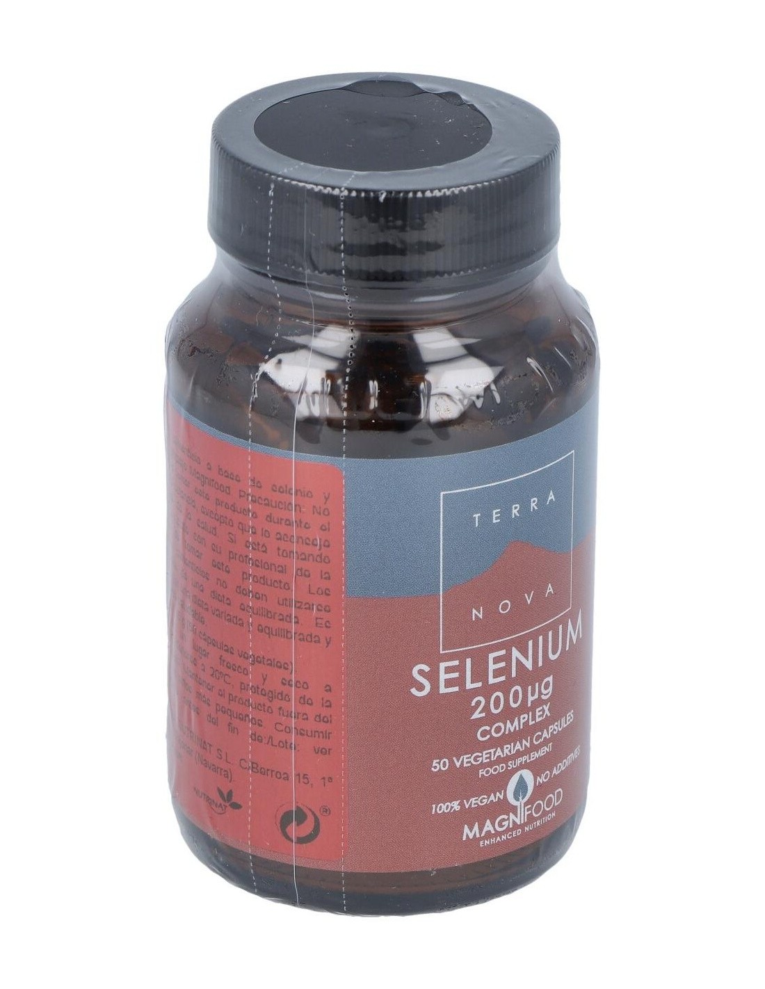 Selenium 200µg Complex 50Cap. de Terranova proporciona una opción práctica para quienes buscan complementar su dieta con selenio, contribuyendo a mantener un aporte constante y controlado de este mineral.