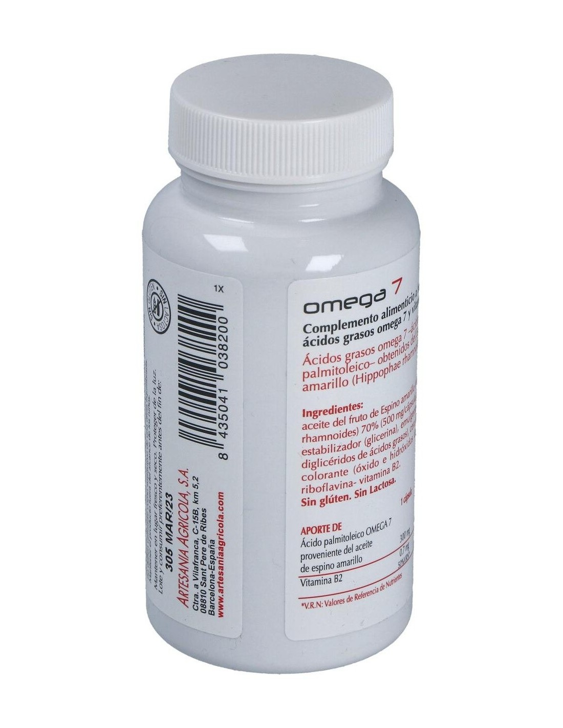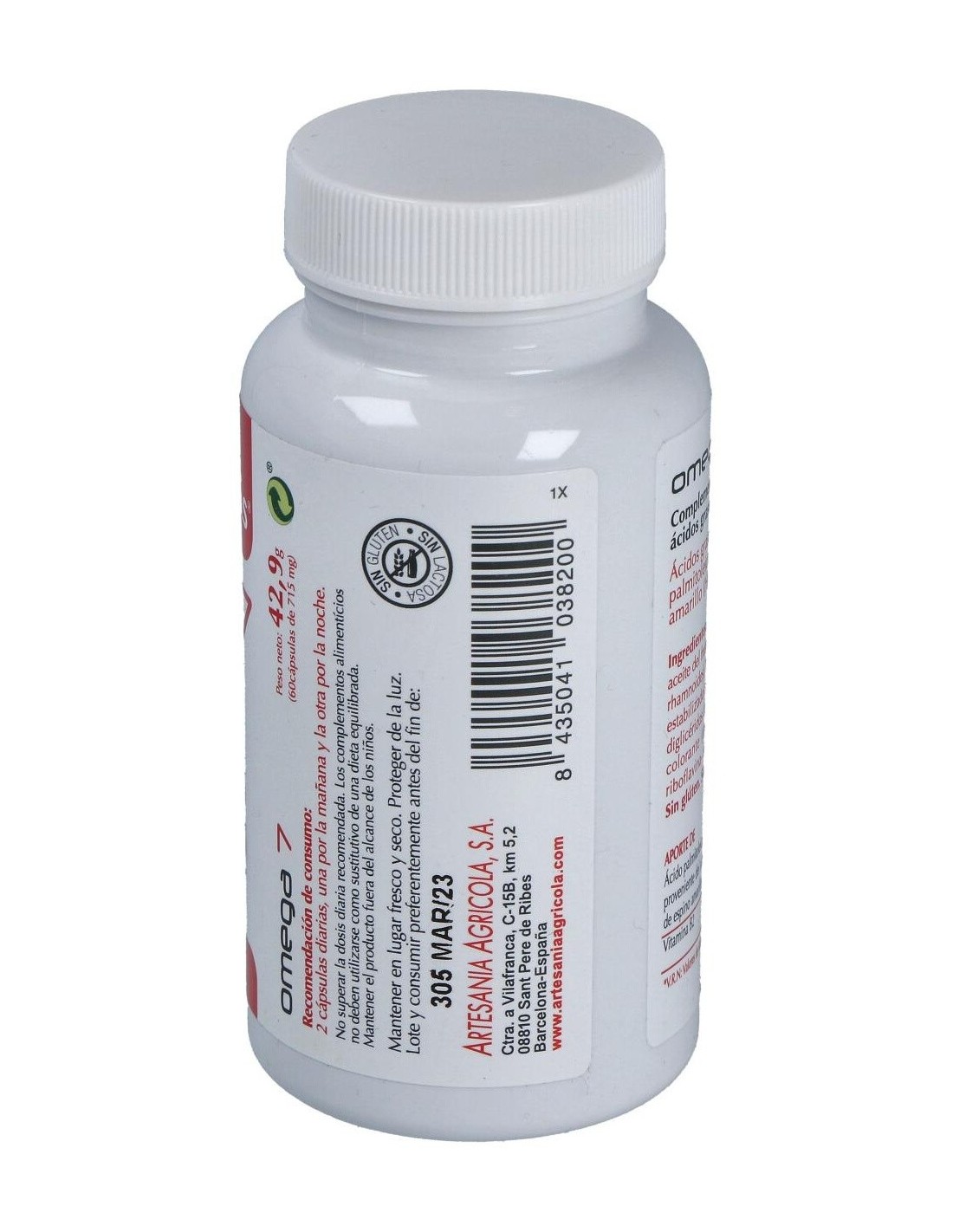 El Omega -7 Plantis 60 Cap. de Artesania es un suplemento natural dirigido a personas que buscan apoyar su bienestar general, formulado con ingredientes que aportan ácidos grasos Omega-7.