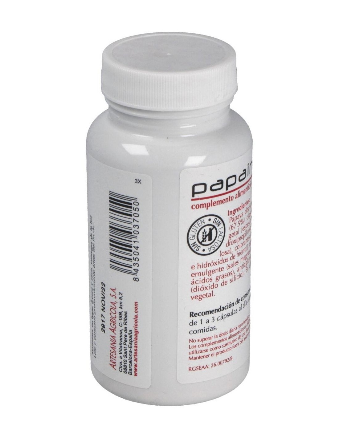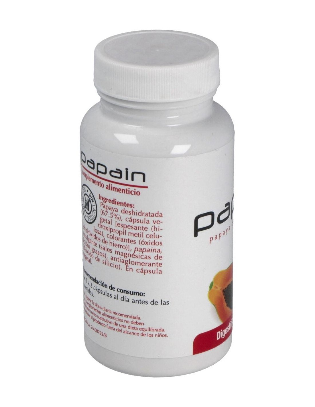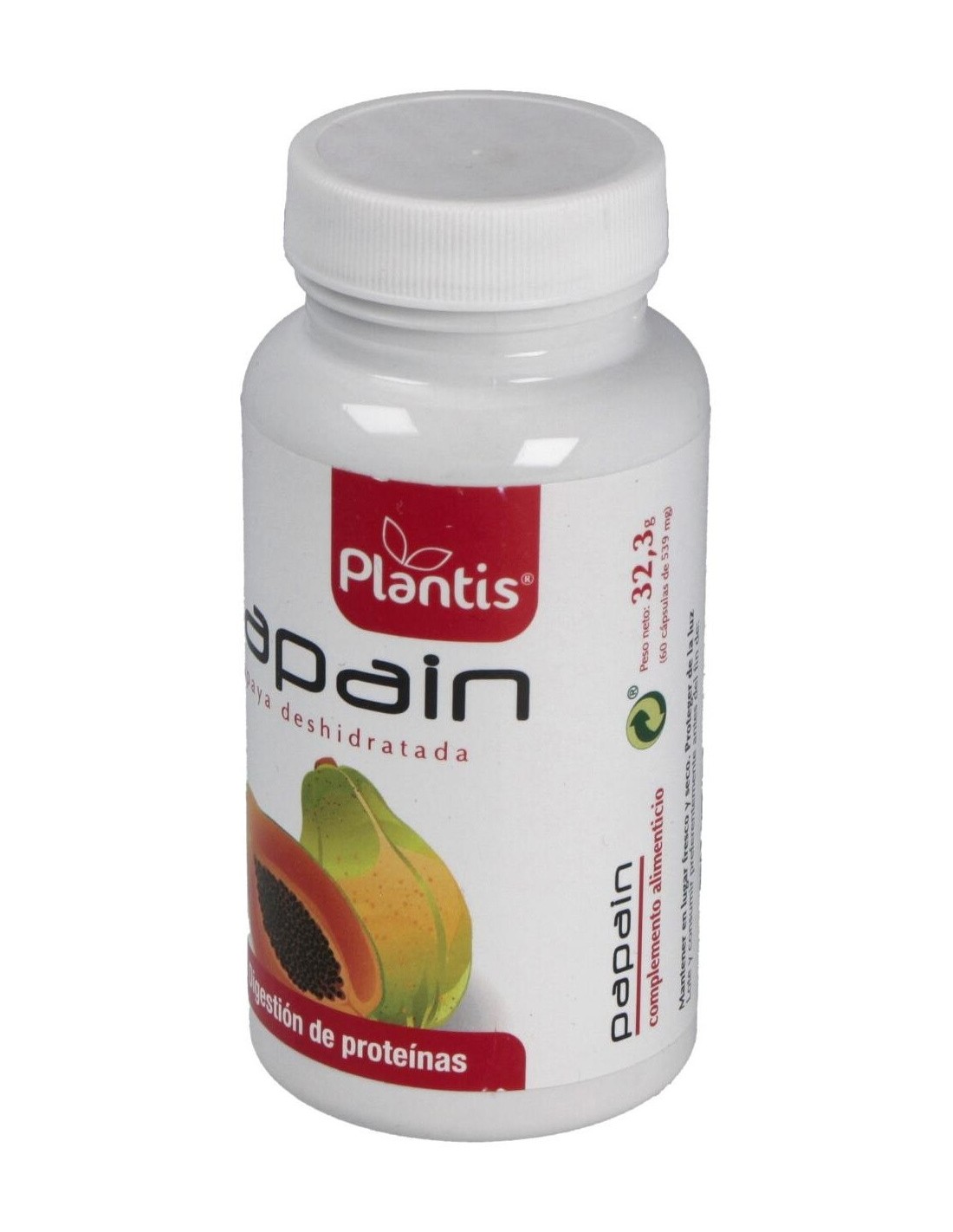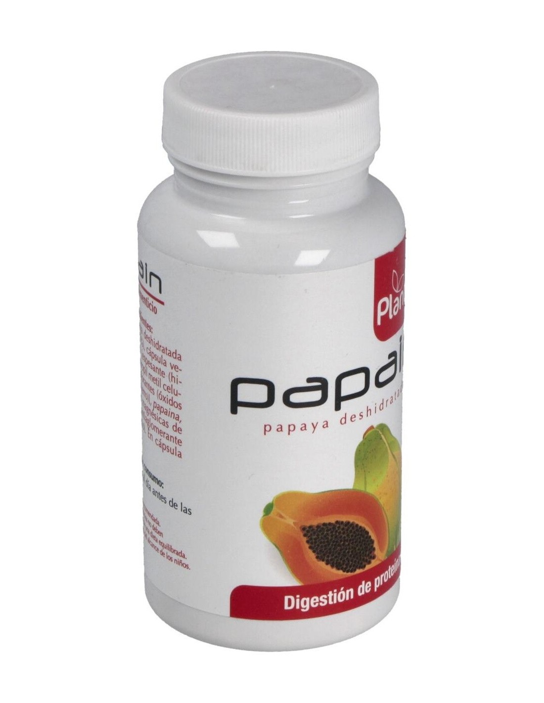 La papaya (Carica papaya L.) es un árbol de 4-8 m con un ramillete terminal de hojas lo que hace que se asemeje a una palmera, sus frutos son bayas de gran tamaño muy apreciados por su sabor. De los frutos antes de su madurez se obtiene por incisión el látex que es la parte usada popularmente gracias a sus beneficiosas propiedades digestivas.El látex es rico en enzimas proteolíticas como la papaína, y la quimopapaína que favorecen la digestión de las proteínas, así como en vitaminas y carotenos.Tradicionalmente la papaya se ha utilizado para el tratamiento de dispepsias, úlcera péptica, gastritis, insuficiencia pancreática exocrina, infecciones parasitarias intestinales (ascaridiasis, enterobiasis, teniasis, toxocariasis o tricuriasis).Papain de Plantis son cápsulas vegetales con un 94% de papaya deshidrata enriquecida con papaína para así potenciar los efectos de los enzimas naturales de la papaya.Actualmente nuestra alimentación no siempre es equilibrada y nuestra dieta comporta un consumo excesivo de proteínas que dificultan el proceso digestivo desencadenando en digestiones pesadas acompañadas de ardor de estómago, sensación de pesadez, etc. Con la ingesta antes de las comidas de cápsulas de Papain, favorecemos la digestión de las proteínas y por tanto el proceso digestivo.Ingredientes:Papaya deshidratada (67.5%), cápsula vegetal [espesante (hidroxipropil metil celulosa), colorantes (óxidos e hidróxidos de hierro)], papaina emulgente (sales magnésicas de ácidos grasos), antiaglomerante (dióxido de silicio).Modo de empleo:Tomar 1-3 cápsulas al día antes de las comidas.Presentación:Envase de 60 cápsulas.