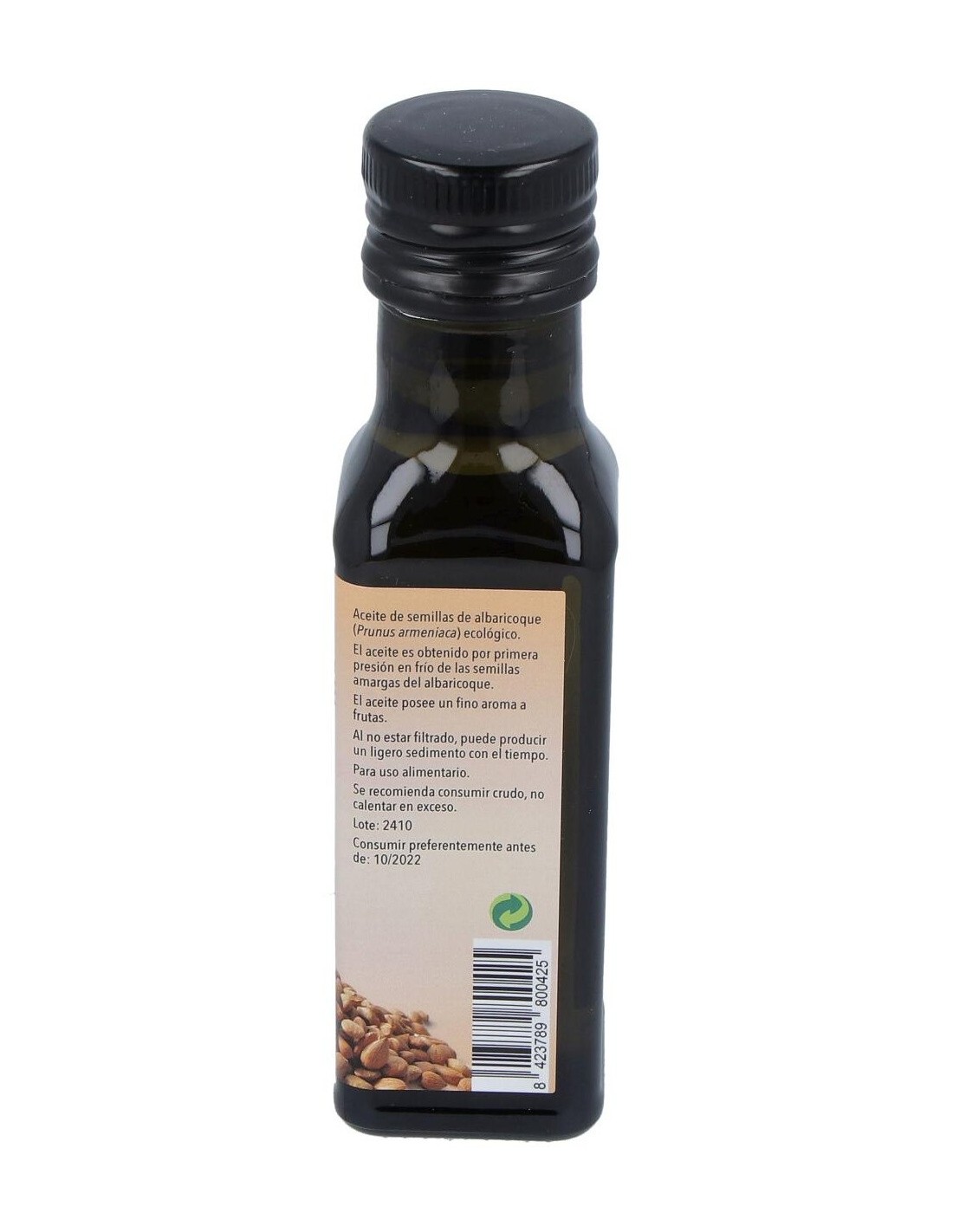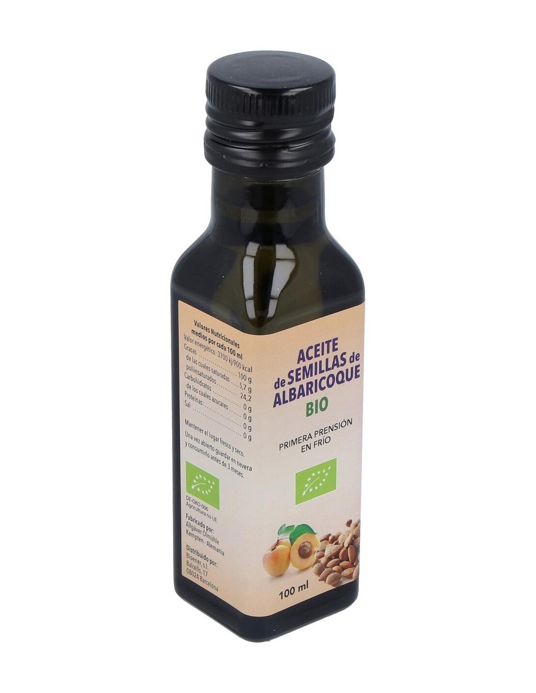 Aceite de semilla de albaricoque con certificación biológica para uso alimentario.