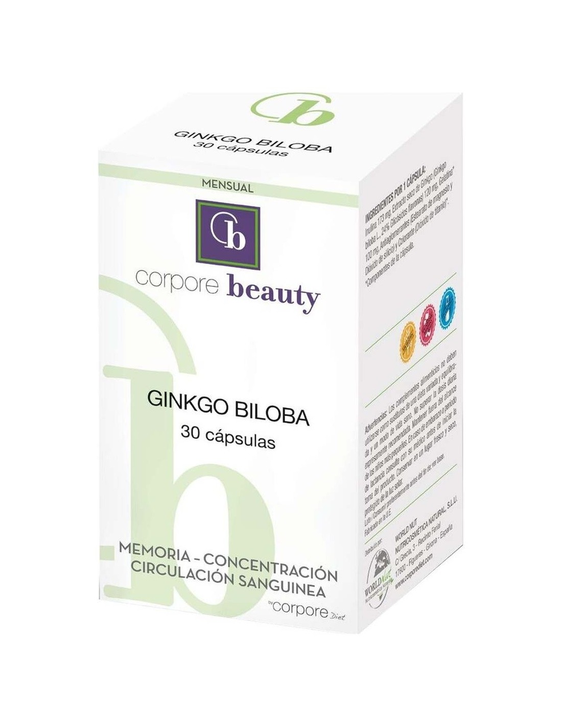 A menudo, el Ginkgo Biloba y sus Flavonoides (Ginkgoloides y Heterósidos) se usan para favorecer el aumento de la circulación sanguínea central y periférica, y como consecuencia, ayudar en la eficiente irrigación de los tejidos orgánicos. Asimismo, esta planta puede potenciar la capacidad de concentración y ayudar a tratar trastornos de memoria, dolor de cabeza, depresión y cambios de humor. Combate los síntomas del síndrome premenstrual (SPM) y ayuda a tratar el glaucoma y mejora la visión en personas con diabetes.CORPORE BASICS ginkgo biloba 30cap. de CORPORE DIET