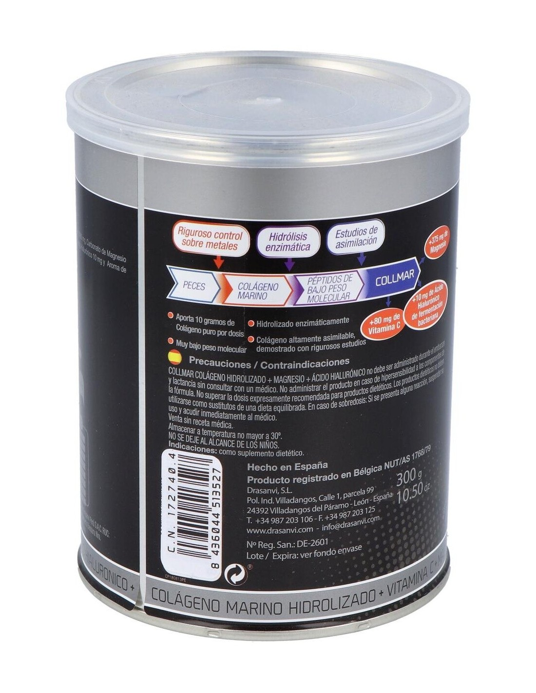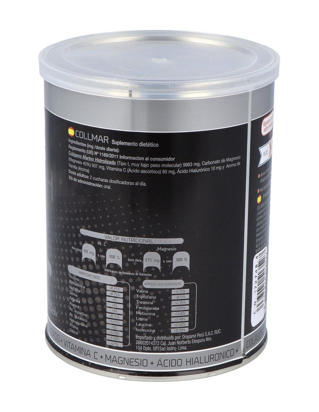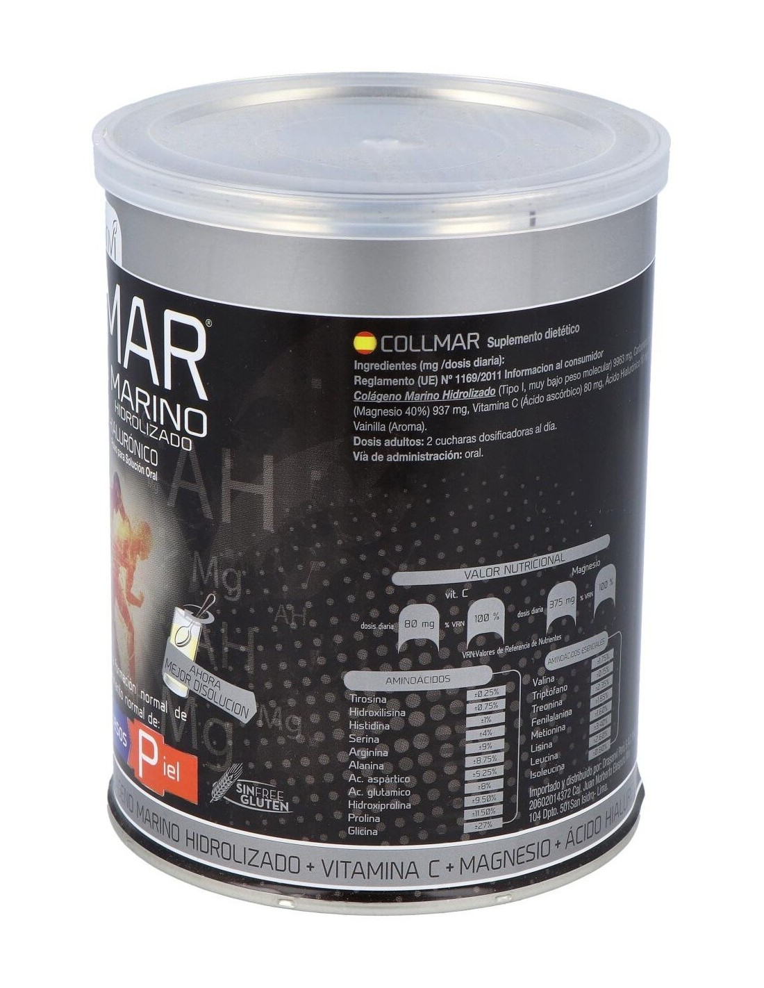Collmar® es un producto formado por colágeno marino de tipo I (formado por péptidos bioactivos con bajo peso molecular) producido a partir de piel y escamas de pescado rigurosamente controlado. Entre su composición destaca su alto contenido en aminoácidos como la glicina, prolina e hidroxiprolina que juntos aportan más del 50% del total.