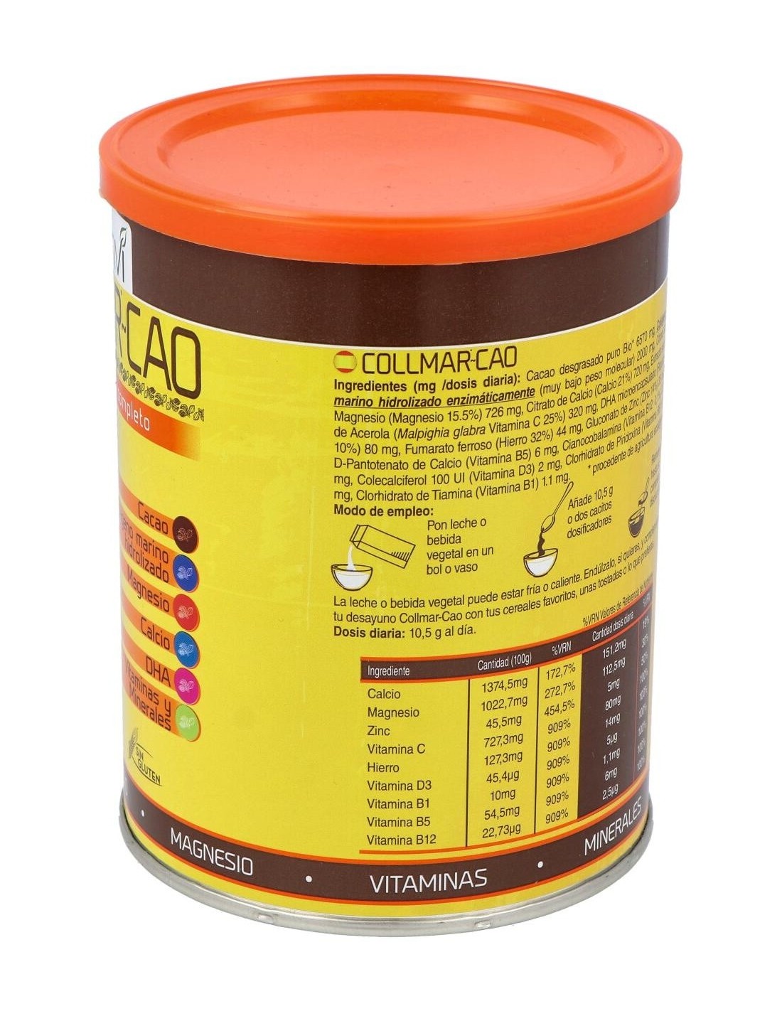 Minerales y vitaminas: Collmar Cao aporta la cantidad diara recomendada de las vitaminas y minerales fundamentales para el correcto funcionamiento orgánico.