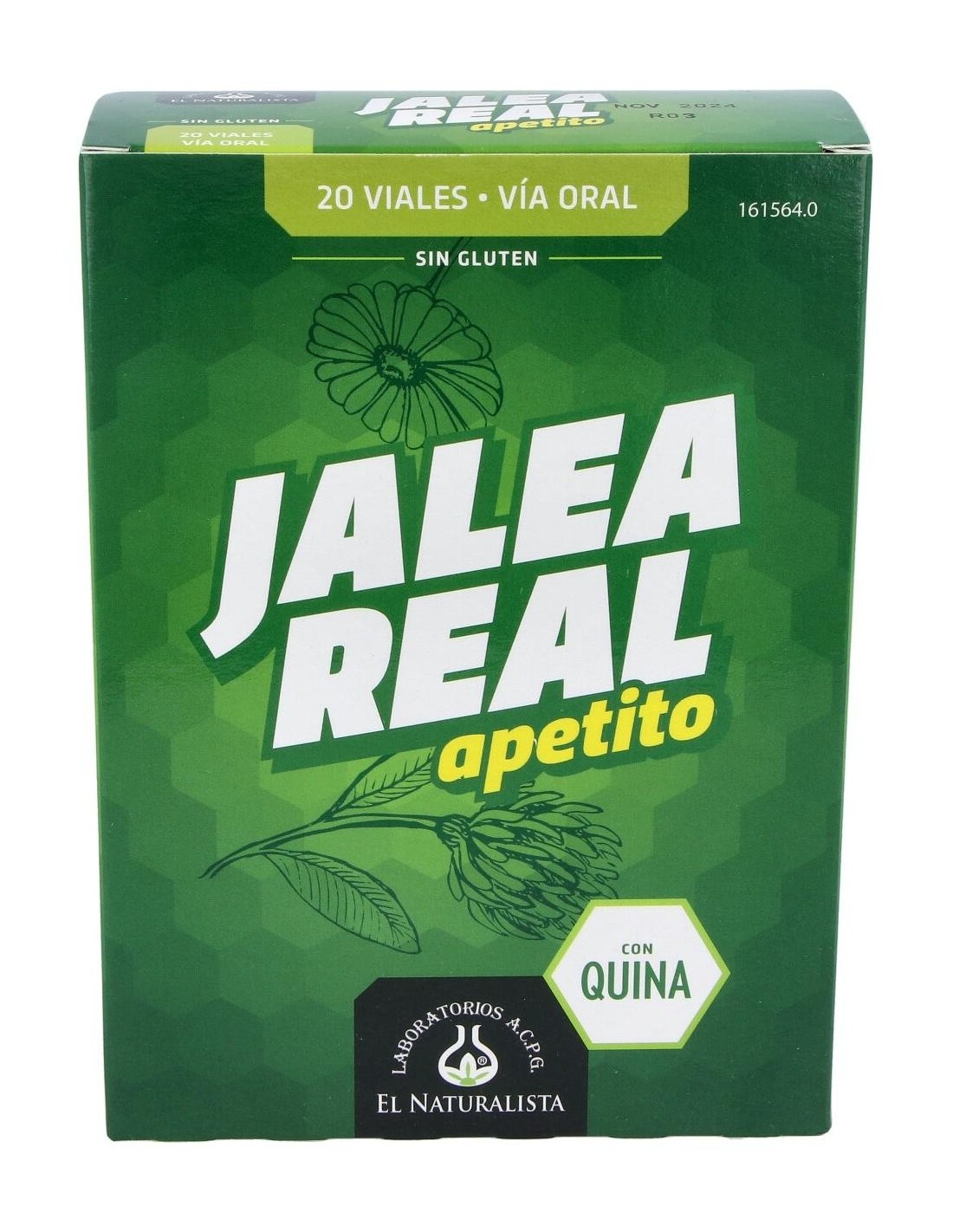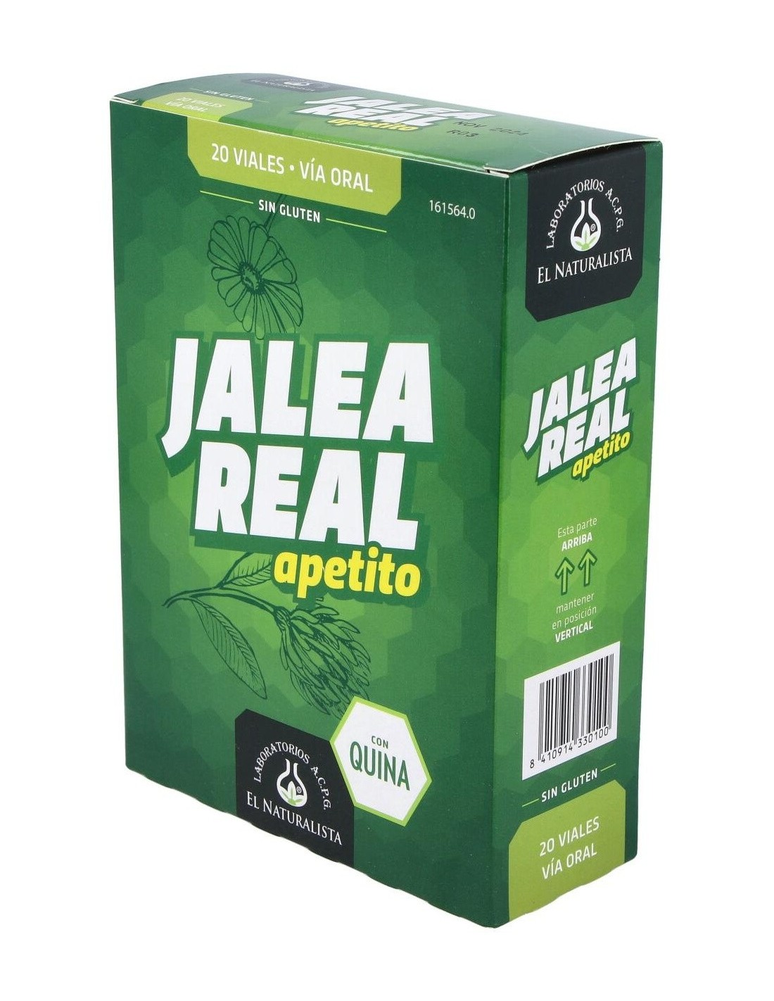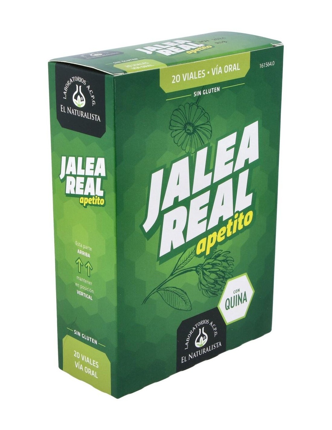 El Naturalista Jalea apetito con quina 20 viales es un complemento alimenticio con jalea real presentado en viales que ofrece al organismo las vitaminas, los minerales y la energía necesaria para afrontar el día a día.