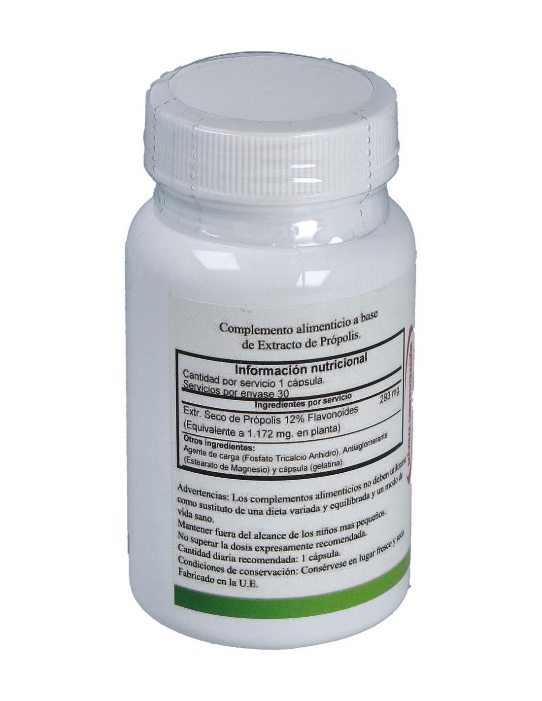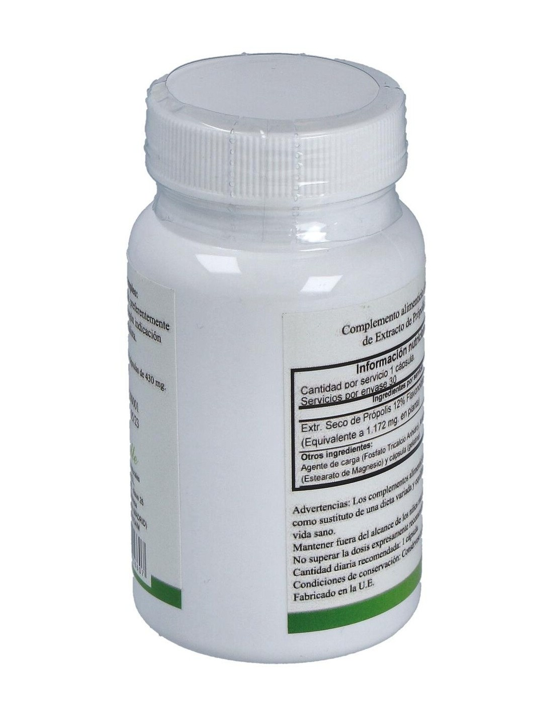 Complemento alimenticio a base de propóleo en cápsulas. De alto poder antibiótico, ofrece una buena protección ante patógenos, bacterias, virus, parásitos y hongos. Su acción antiinflamatoria le permite actuar sobre la mucosidad de la faringe inflamada, tiene y suavizantes y ayuda a la irritación y molestias de garganta. Mejora el decaimiento físico.