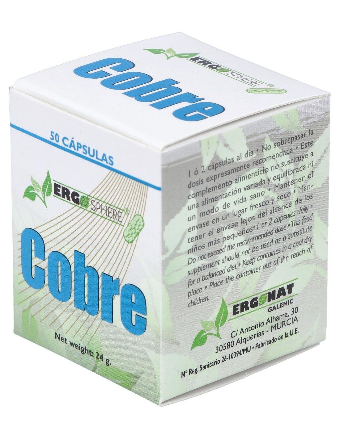 El Cobre Ergosphere 50Cap. de Ergonat es un suplemento dirigido a personas que buscan apoyar la salud articular, aportando cobre en cápsulas para contribuir al bienestar óseo y muscular.