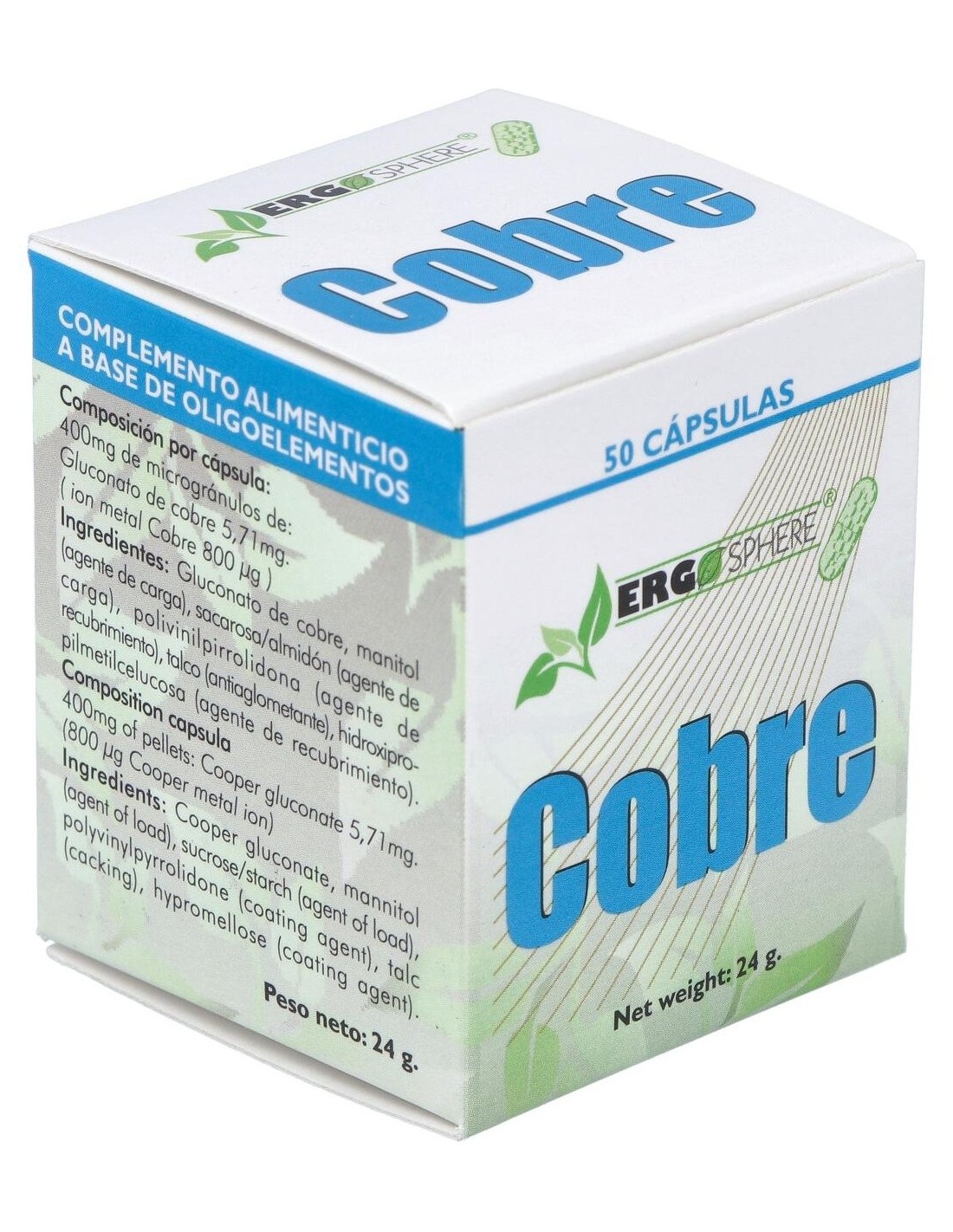 El Cobre Ergosphere 50Cap. de Ergonat está diseñado para personas que buscan un complemento nutricional que aporte cobre de manera práctica y dosificada. Es adecuado para quienes desean incorporar este mineral en su rutina diaria con un formato cómodo y controlado.