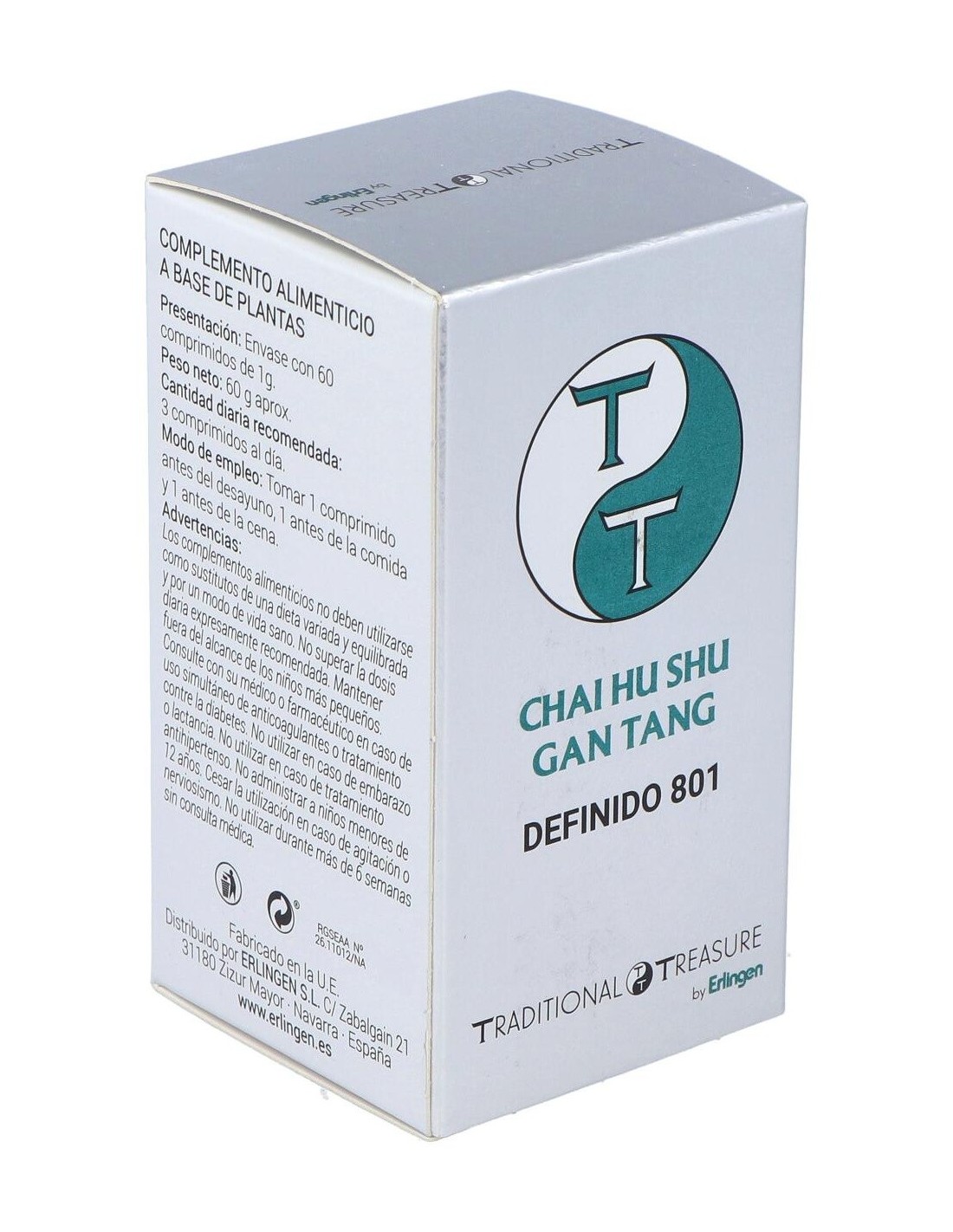 Agentes de carga (Celulosa microcristalina y Maltodextrina), Bupleurum (Bupleurum chinense DC.) 270 mg, Mandarina (Citrus reticulata Blanco) 270 mg, Peonía (Paeonia lactiflora Pall.) 225 mg, Naranja amarga (Citrus aurantium L.) 225 mg, Cípero (Cyperus rotundus L.) 180 mg, Ligusticum (Ligusticum wallichii Franch.) 180 mg, Regaliz (Glycyrrhiza glabra L.) 150 mg y Agente de carga (Estearato de magnesio).