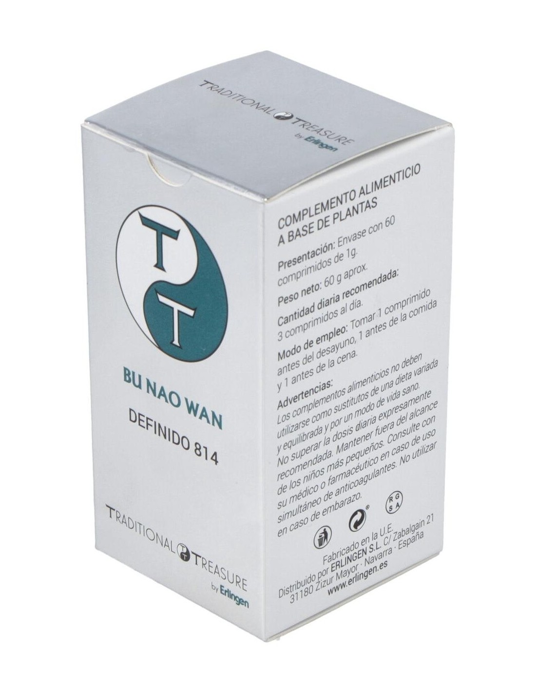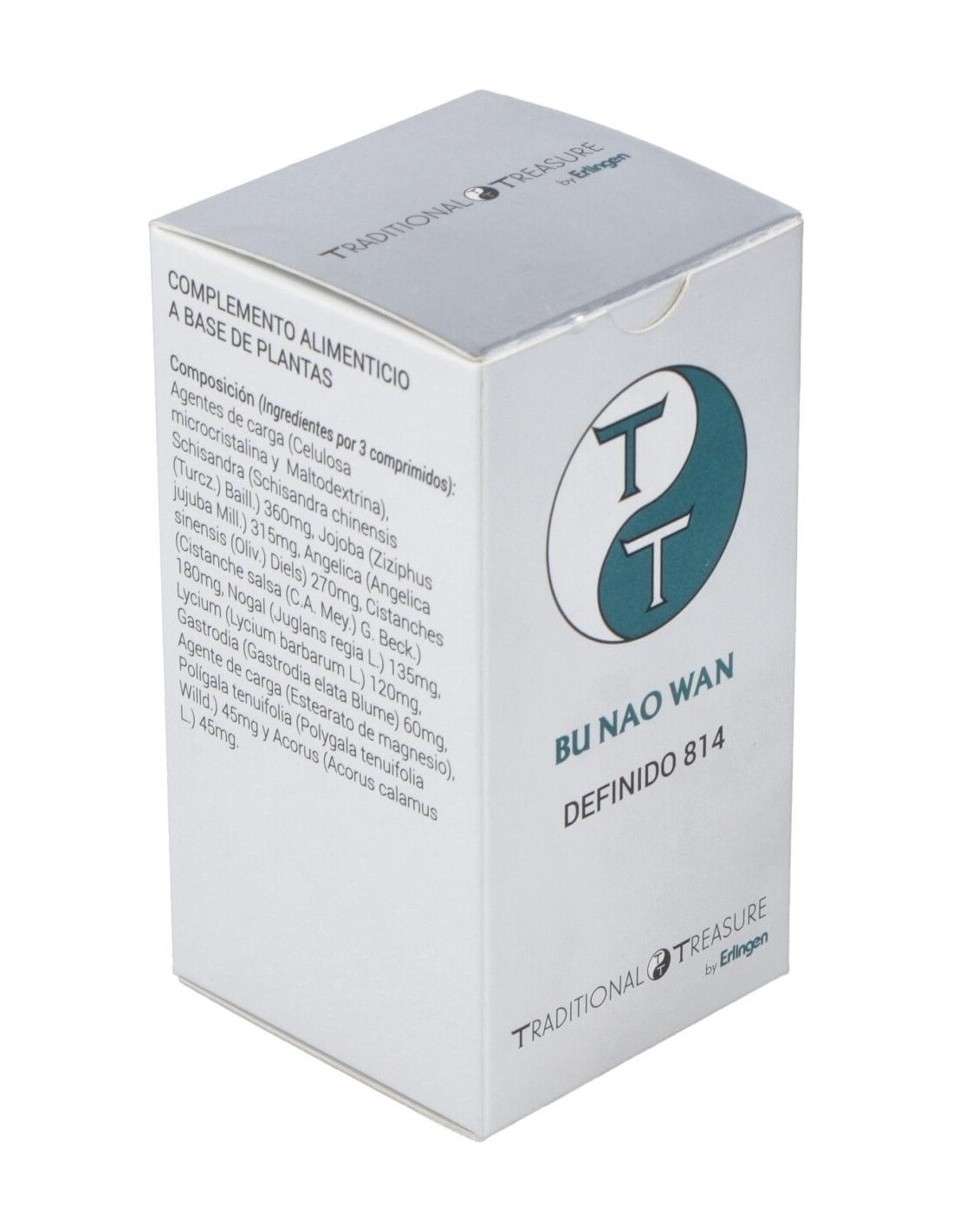 Agentes de carga (Celulosa microcristalina y Maltodextrina), Schisandra (Schisandra chinensis (Turcz.) Baill.) 360 mg, Jojoba (Ziziphus jujuba Mill.) 315 mg, Angélica (Angelica sinensis (Oliv.) Diels) 270 mg, Cistanches (Cistanche salsa (C.A. Mey.) G. Beck.) 180 mg, Nogal (Juglans regia L.) 135 mg, Lycium (Lycium barbarum L.) 120 mg, Gastrodia (Gastrodia elata Blume) 60 mg, Agente de carga (Estearato de magnesio), Polígala tenuifolia (Polygala tenuifolia Willd.) 45 mg y Acorus (Acorus calamus L.) 45 mg.