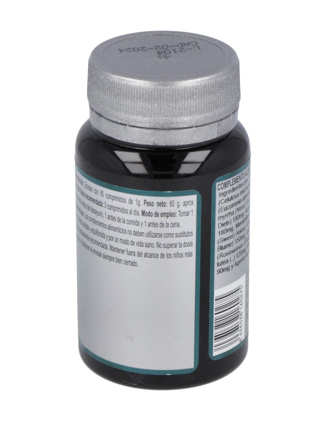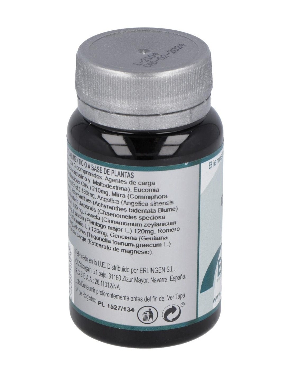 Eucomia (Eucommia ulmoides Oliv.), Mirra (Commiphora myrrha (Nees) Engl.), Angélica (Angelica sinensis Diels), Achyranthes (Achyranthes bidentata Blume), Membrillero Japonés (Chaenomeles speciosa (Sweet) Nakai), Canela (Cinnamomum zeylanicum Blume), Llantén (Plantago major L.), Romero (Rosmarinus officinalis L.), Genciana (Gentiana lutea L.), Alholva (Trigonella foenum-graecum L.) y Agentes de carga (Celulosa microcristalina, Maltodextrina y Estearato de magnesio).